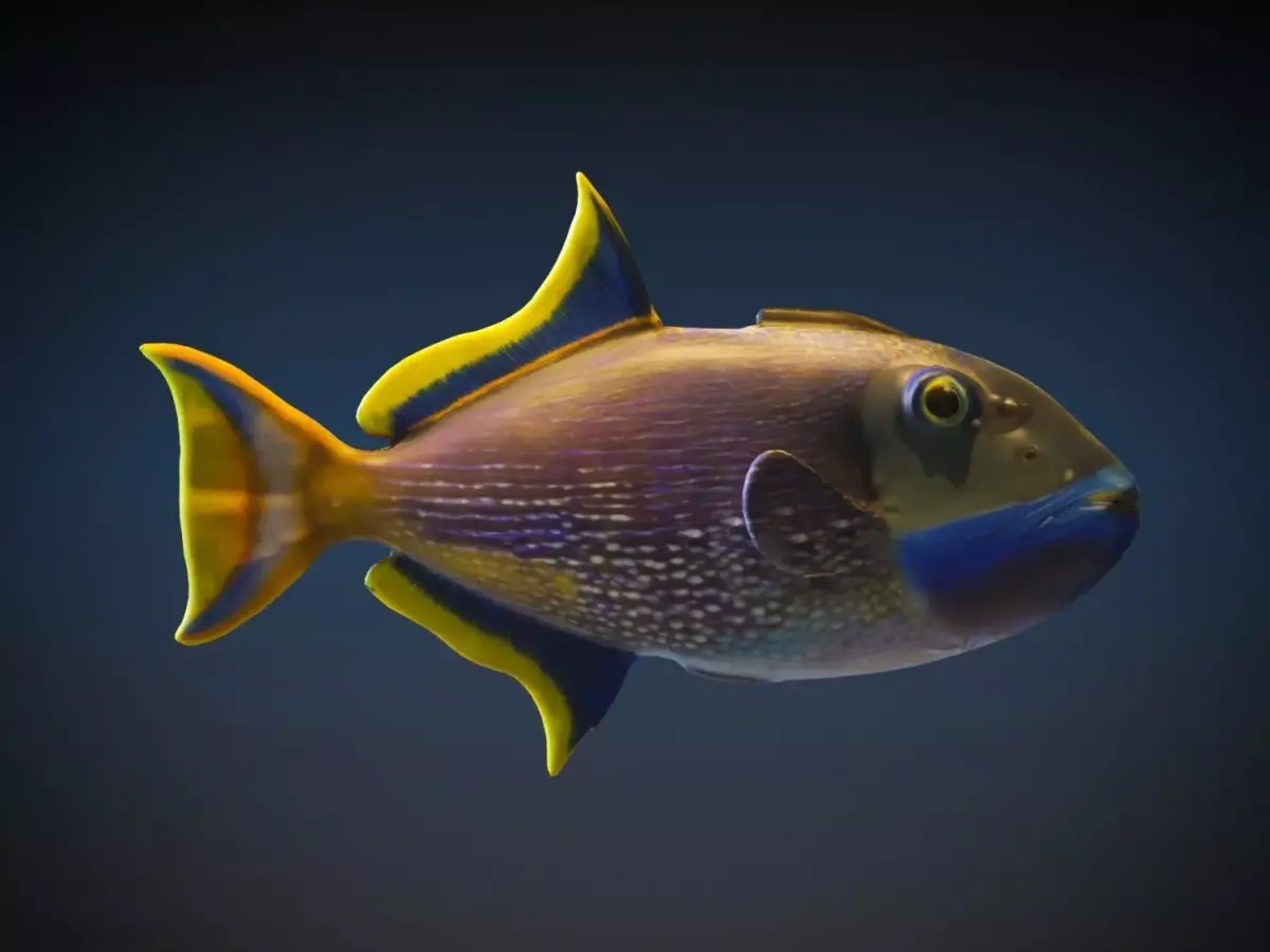 Photorealistic Blue Throat Triggerfish 3D model for marine renders, aquarium visuals, and underwater 3D art.