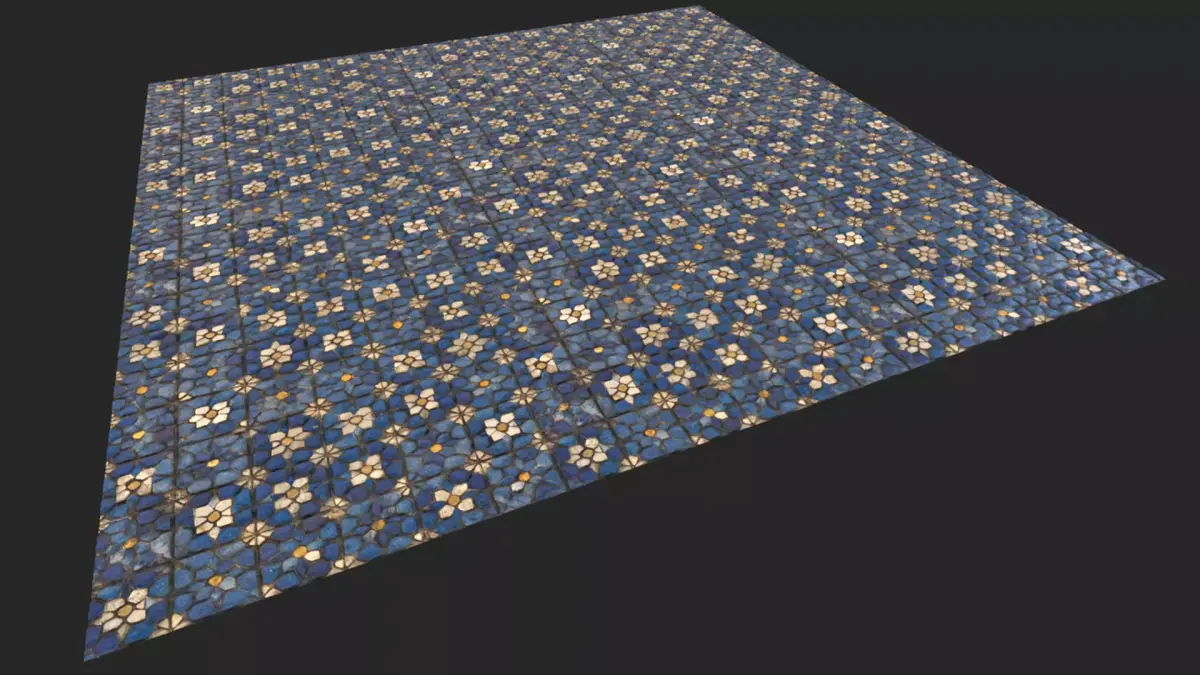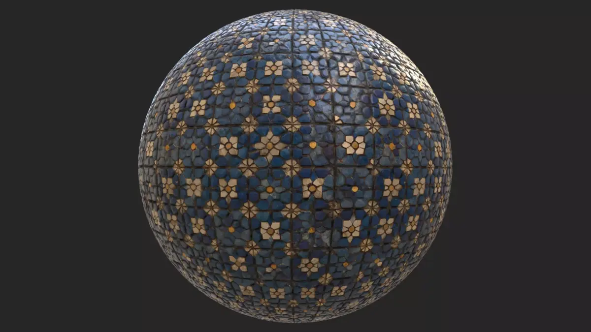 Enhance your projects with these handcrafted-style, high-quality geometric mosaic tiles. Featuring intricate star patterns and a deep cobalt glazed finish, this material is perfect for architectural visualization and historical environments.