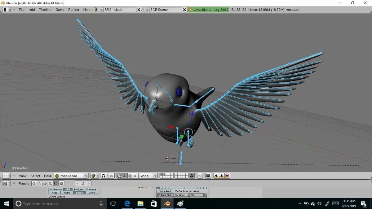 blue tit modeled, textured, rigged and animated in blender 2.49.
