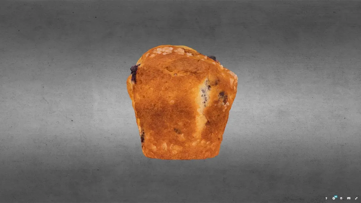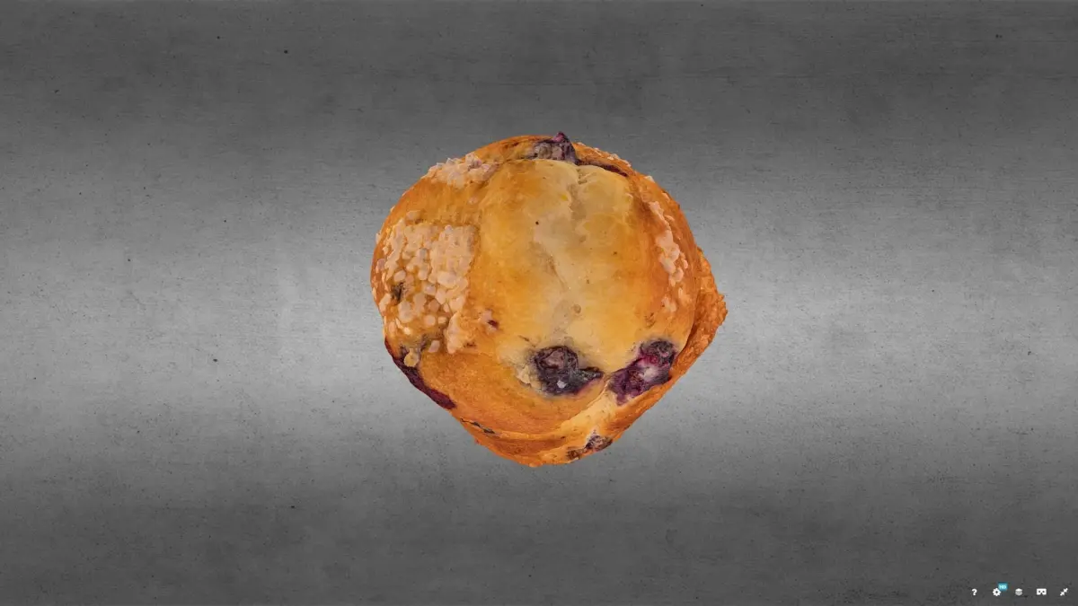Photo-real, unlit, texturized model of a Blueberry Muffin. This object was generated using photogrammetry with a DSLR camera and images edited in Light Room, compiled in Reality Capture, and re-topologized in Insta-Mesh. The mesh is edited in Agisoft, and model retextured in Reality Capture.
