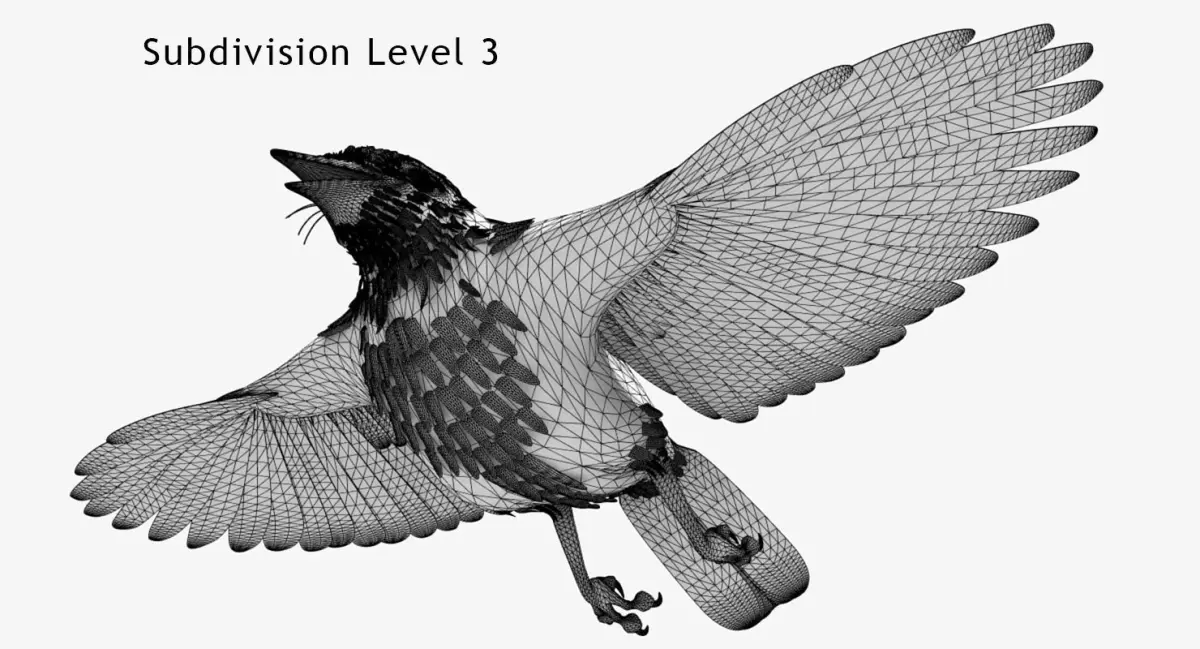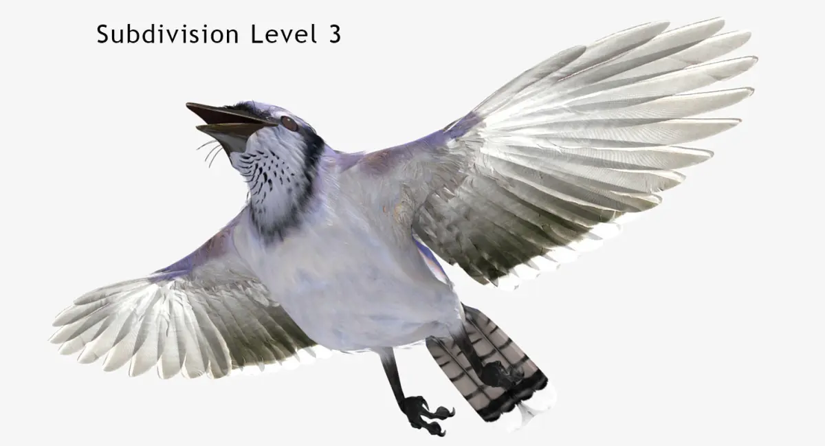 You can also make adjustments, like spreading the wing tip feathers and spreading the tail using morph targets.