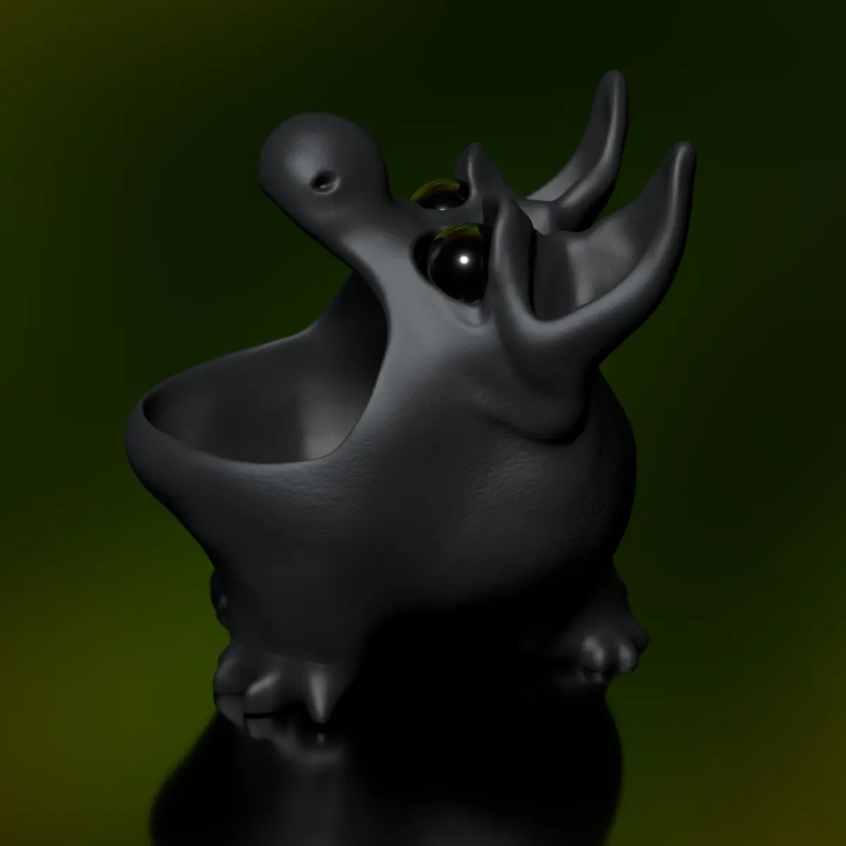 **Purpose:**Bluffy can be used as a thread eater, table trash can, or for storing small items. The model is high-polygon and includes 2 files:MonsterTrashBluffyMed.stlMonsterTrashBluffy.stl