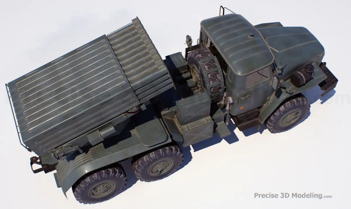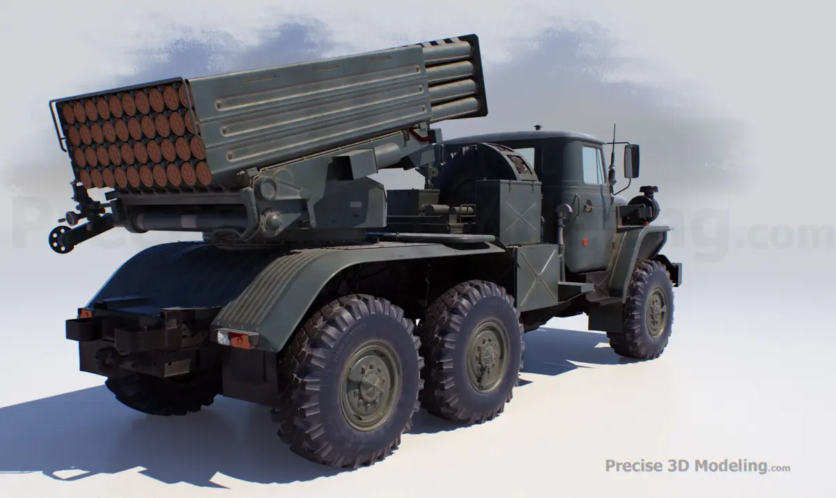 It is Hi-Polygonal model of Soviet truck-mounted 122 mm multiple rocket launcher.The model is very detaled and precise. Made by Precise3DModelingAll details were made with high accuracy to the actual prototype.Preview images are rendered with V-rayHigh polygonal model.Ideal for movie and video