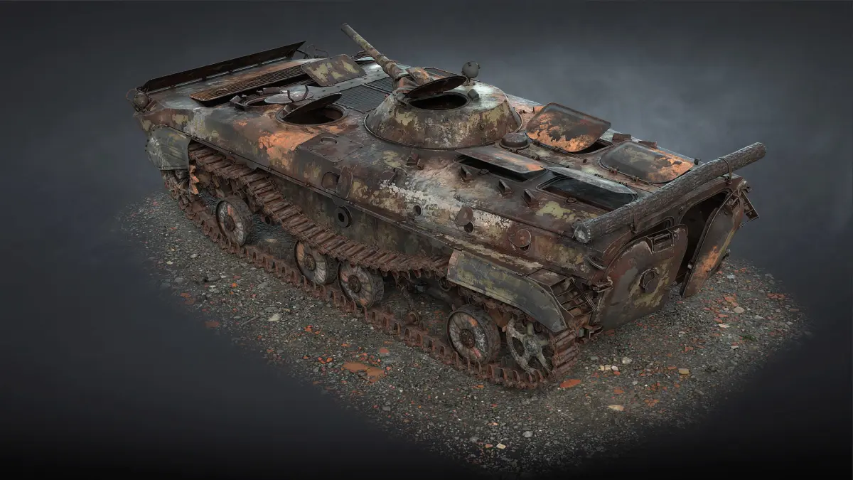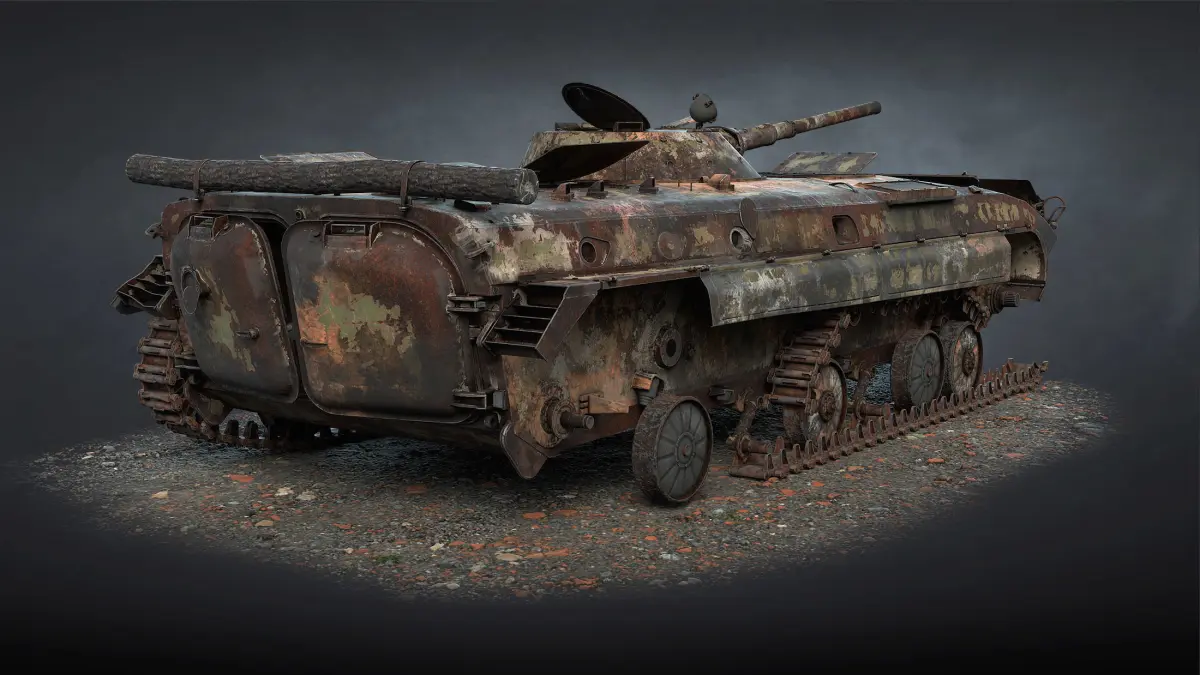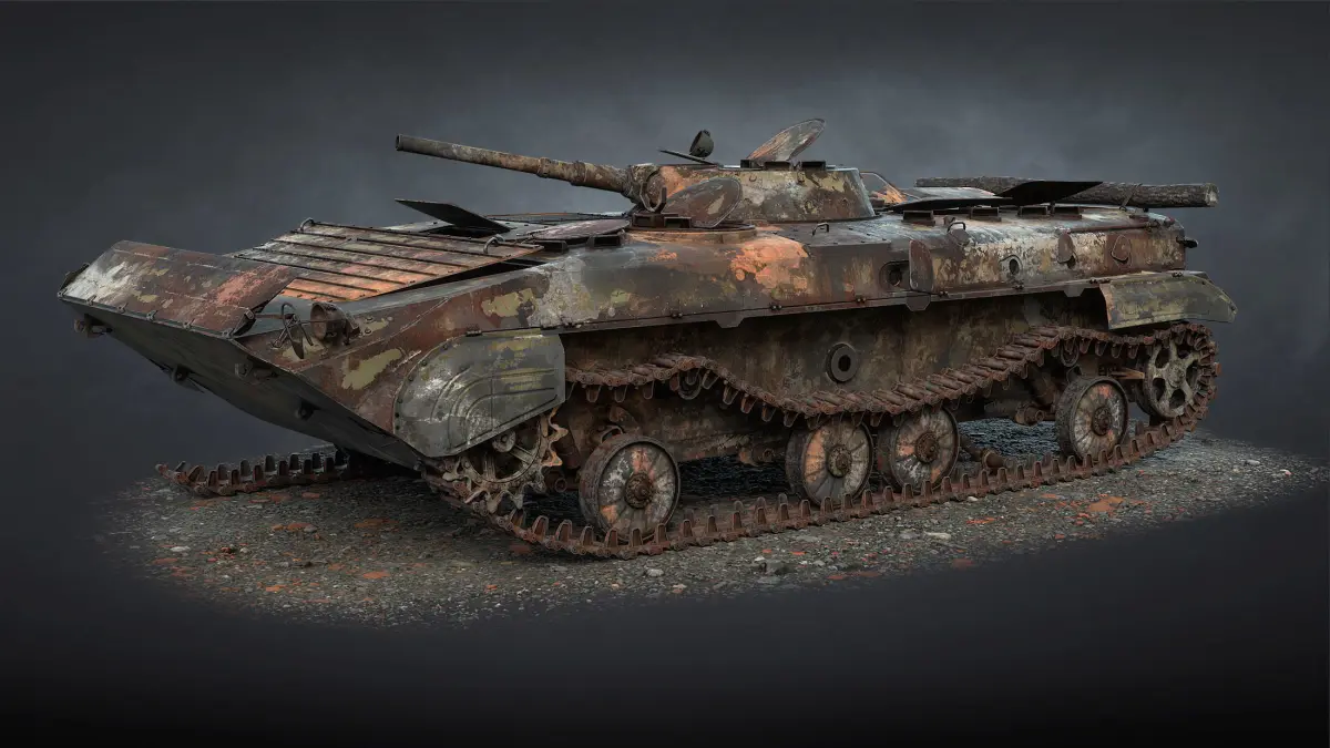 Game ready 3D-model of destroyed burnt Soviet IFV BMP-1.