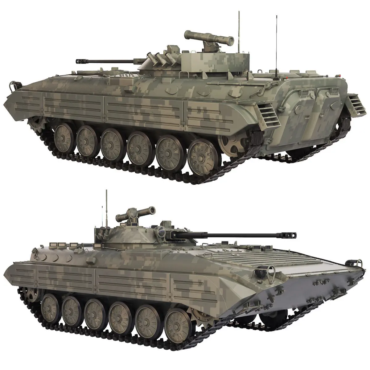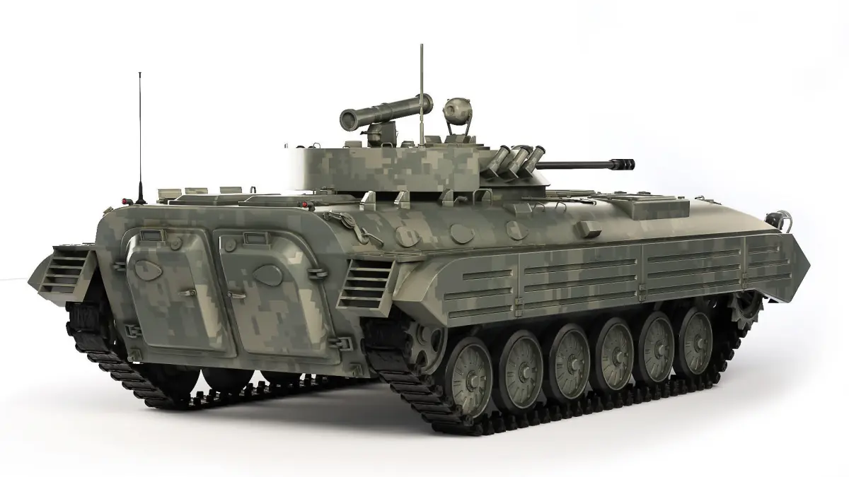 BMP-2 is a Soviet and Russian tracked infantry fighting vehicle designed to transport personnel to the front line, increase their mobility, armament and security on the battlefield in the conditions of the use of nuclear weapons and joint actions with tanks in battle.