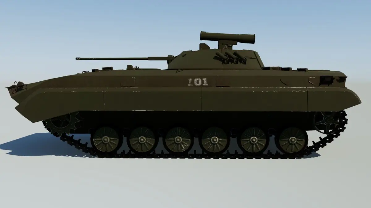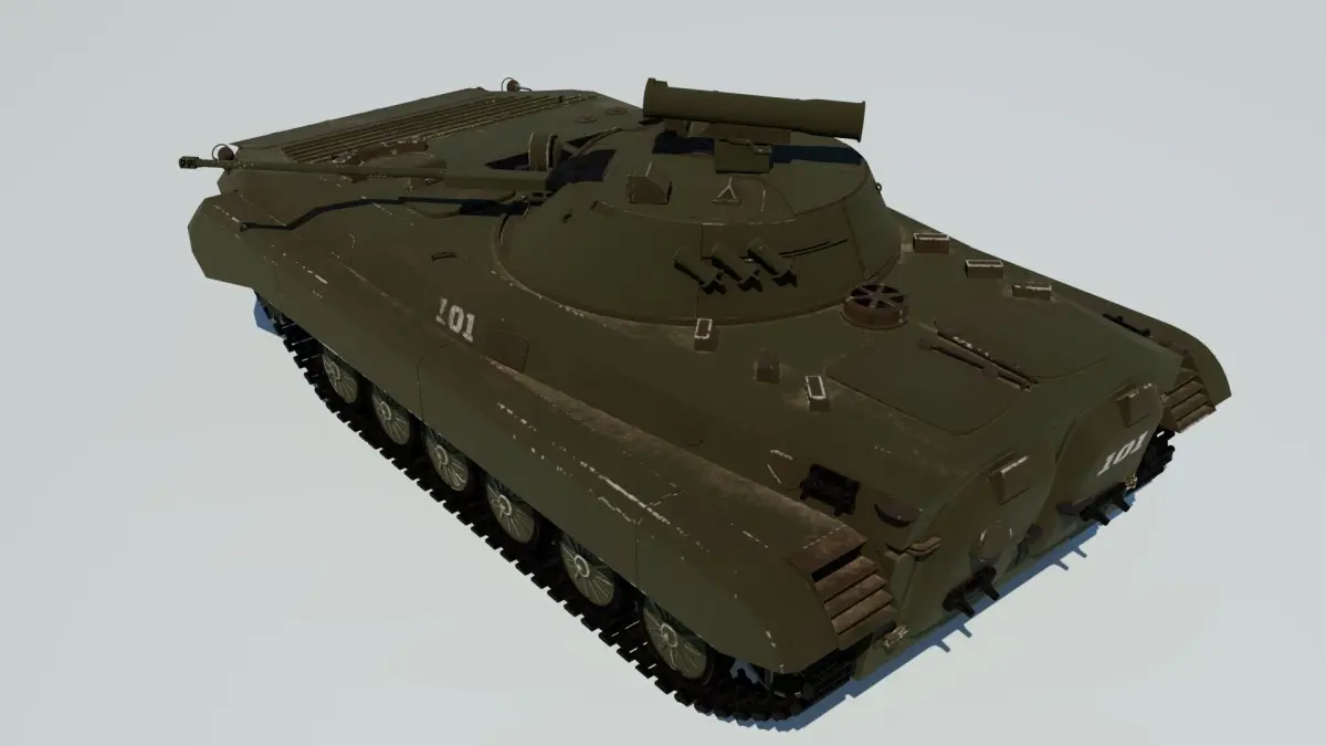 Low-poly model of soviet infantry fighting vehicle (IFV) BMP-2.Made in Autodesk Maya 2019. Textures made in Substance Painter and separated in 3 packs - Turret, Body, Wheels (wheels and threads).Hope you like it.
