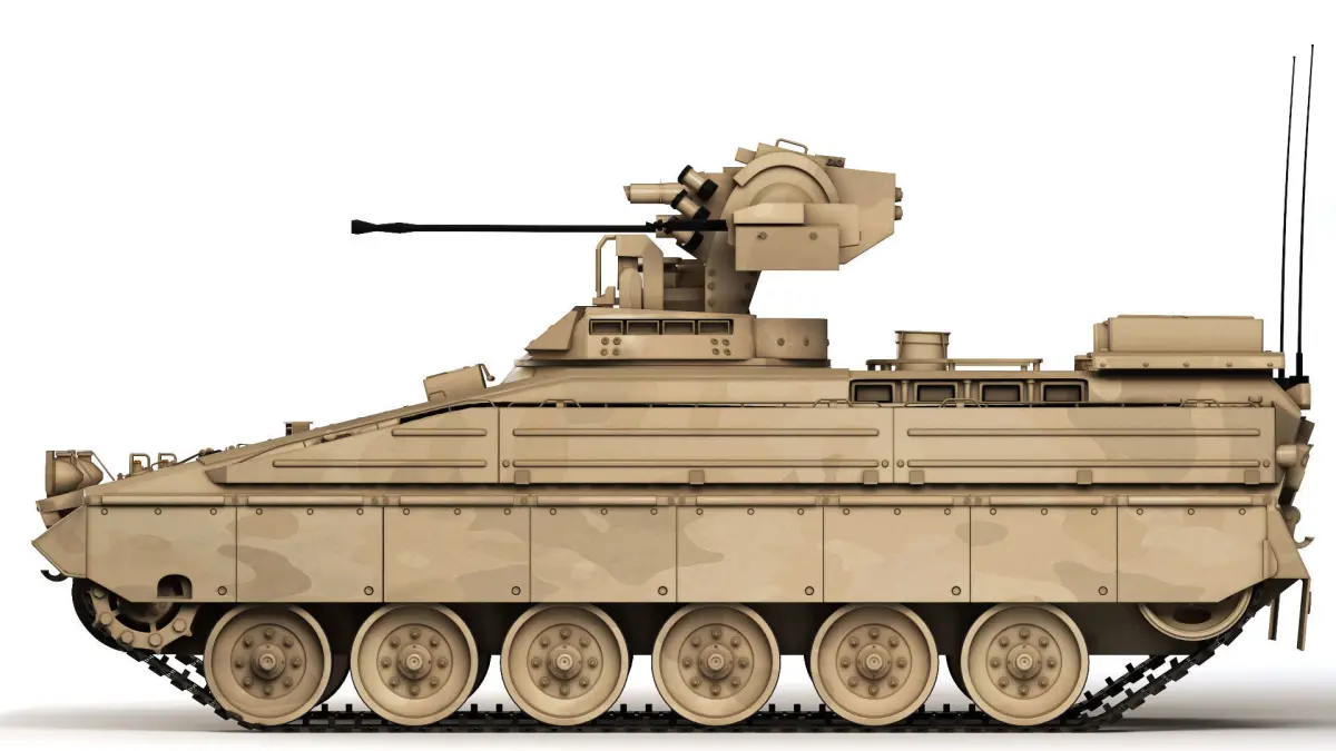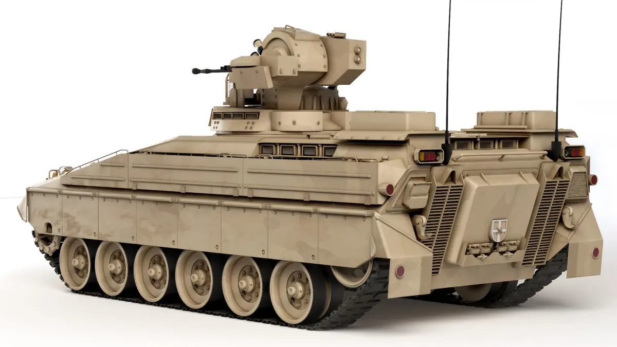 The Marder infantry fighting vehicle is a tracked vehicle with a fully enclosed welded armored hull. Ahead to the right is the MTO, to the left of it is the control compartment. Behind them is the fighting compartment with a rotating two-man turret mounted above it.