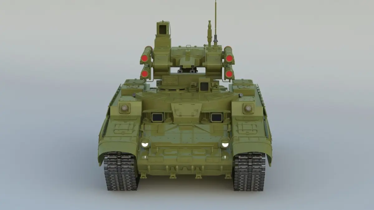 The BMPT 'Terminator' is an armored fighting vehicle (AFV), designed and manufactured by the Russian company Uralvagonzavod. This vehicle was designed for supporting tanks and other AFVs in urban areas. The BMPT is unofficially named the 'Terminator' by the manufacturers. It is heavily armed and armored to survive in urban combat. The AFV is armed with four 9M120 Ataka missile launchers, two 30 mm 2A42 autocannons, two AG-17D grenade launchers, and one coaxial 7.62 mm PKTM machine gun.