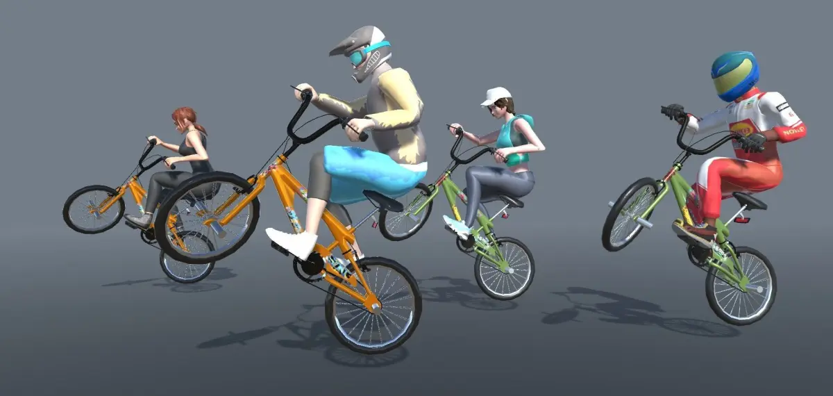 This Action Pack contains Amazing BMX Bike Animations. 1 bike with 2 textures, 4 avatars, with 55+ animations, added in place and progressive both the versions of each animation.