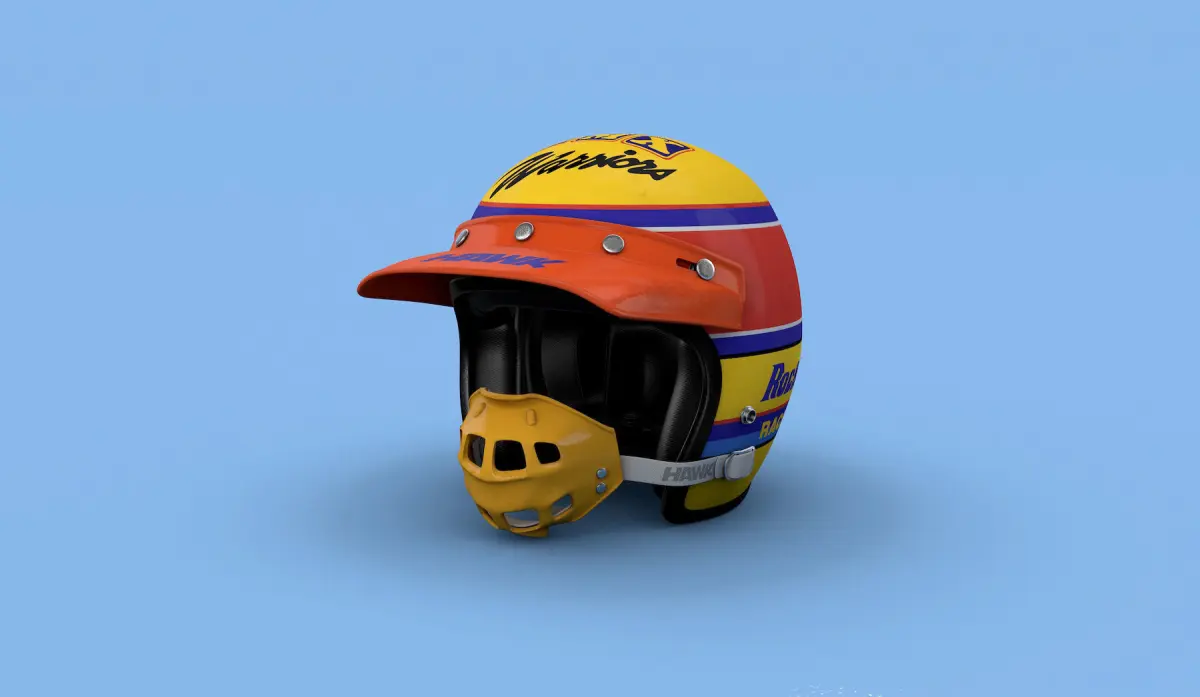 Vintage motorcycle helmet manufactored in 1978.This 70s motorcycle helmet is set up for BMX racing,and is modelled in Cinema 4D with backed textures.