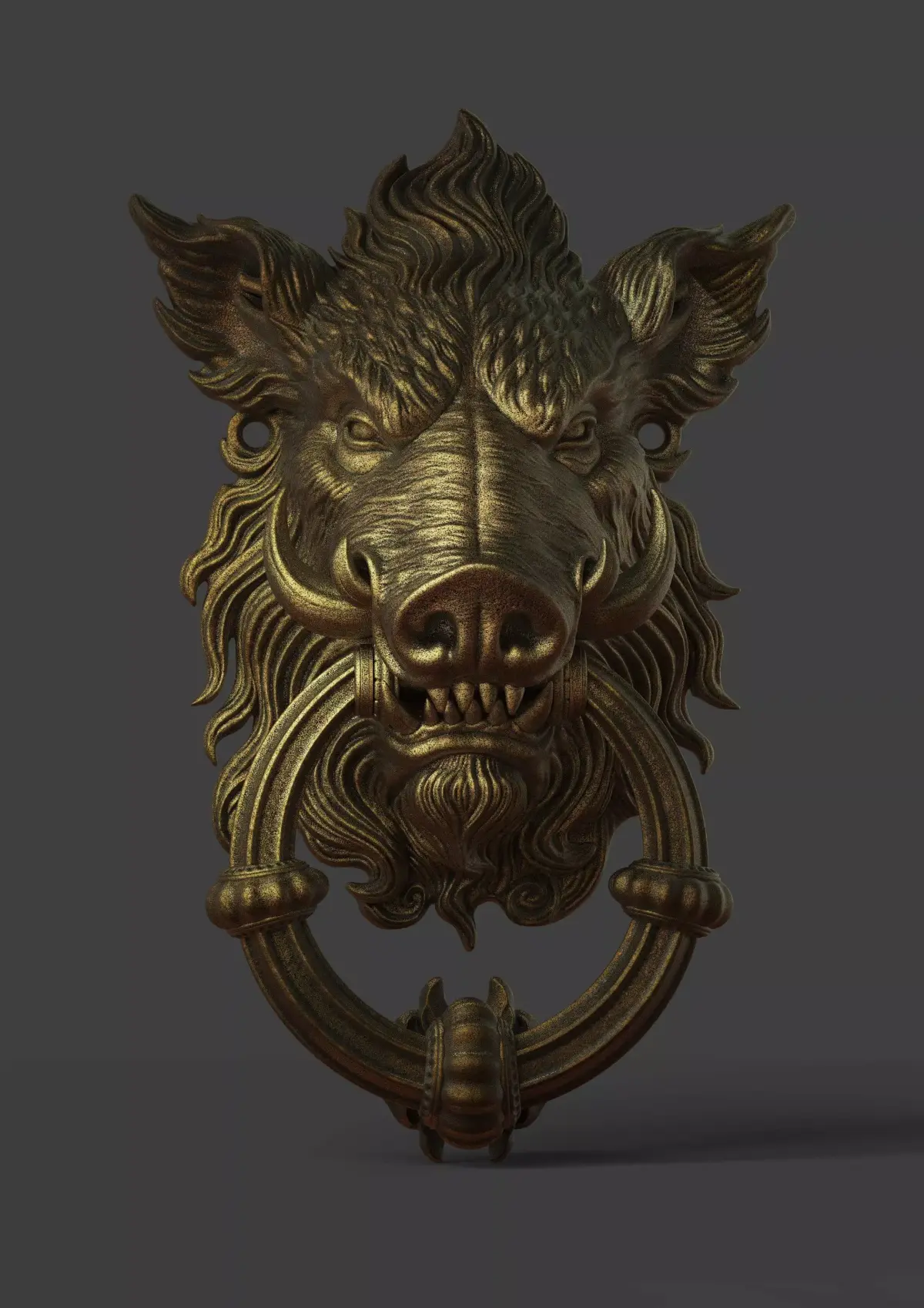 This exquisitely detailed door knocker captures the spirit of the wild forest. The boar—an ancient symbol of courage, resilience, and guardianship—becomes a striking centerpiece for your door or interior décor. The model is sculpted with great care, showcasing every strand of fur, every curve of the tusks, and the rich texture of aged metal.What’s Included:High-quality STL fileFully ready for FDM and resin 3D printingEasily scalable to any size — from a small ornament for boxes or furniture to a full-size door knockerAdd a unique artistic accent to your home, create a memorable gift, or enhance a fantasy-themed project with this powerful and atmospheric piece.Print size Boar head : length - 220 mm/ width - 247 mm/ height -110 mm.This design was made by the Maskitto team. All the rights belong to the creators, therefore, it is forbidden to resell nor share this design as a digital file.