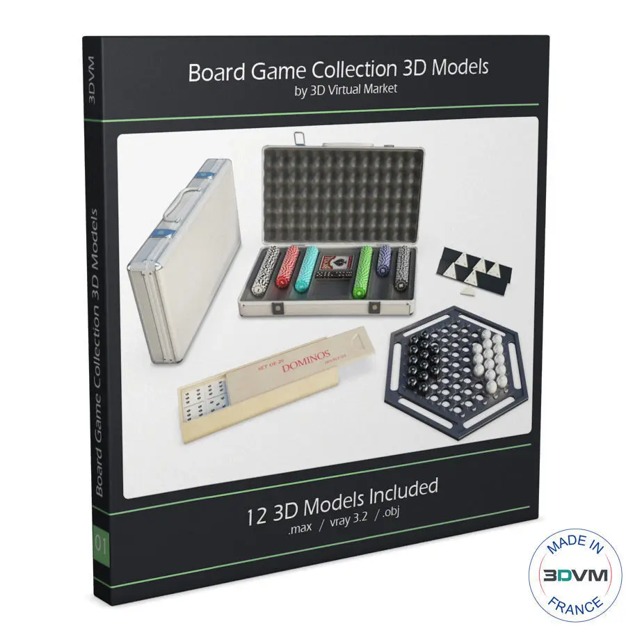 12 3d models are included in the box Board Games Collection: