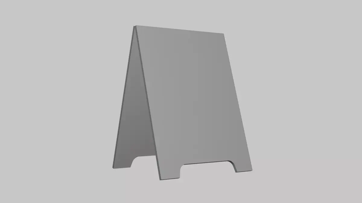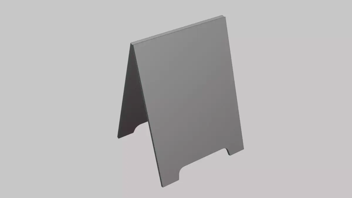 D model of a board stand designed for signage, displays, or tabletop presentations. Ideal for retail visualization, exhibition scenes, and informational displays.