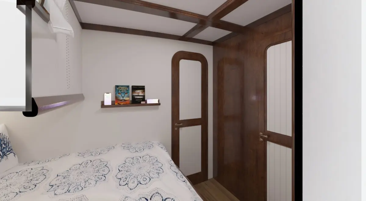 1 master cabin, 1 passenger cabin and 1 bridge and saloon were designed for this boat.