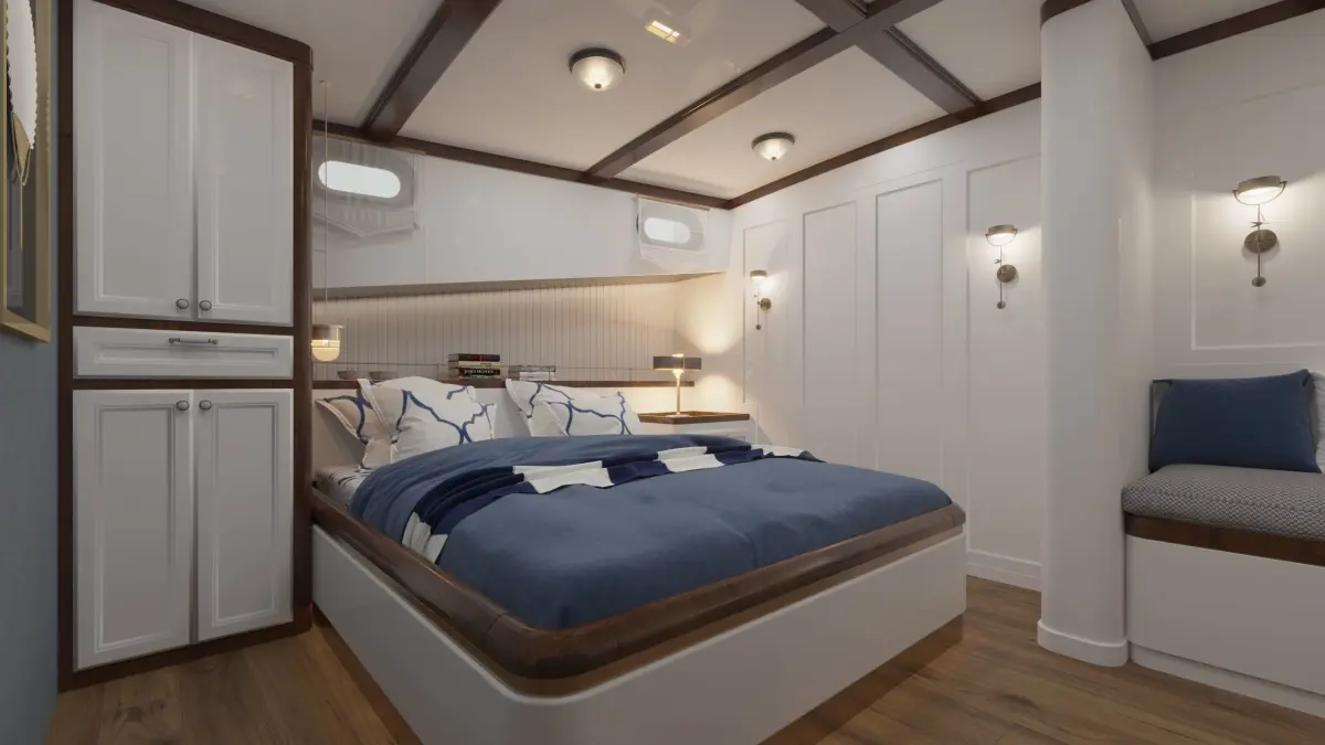 1 master cabin, 1 passenger cabin and 1 bridge and saloon were designed for this boat.
