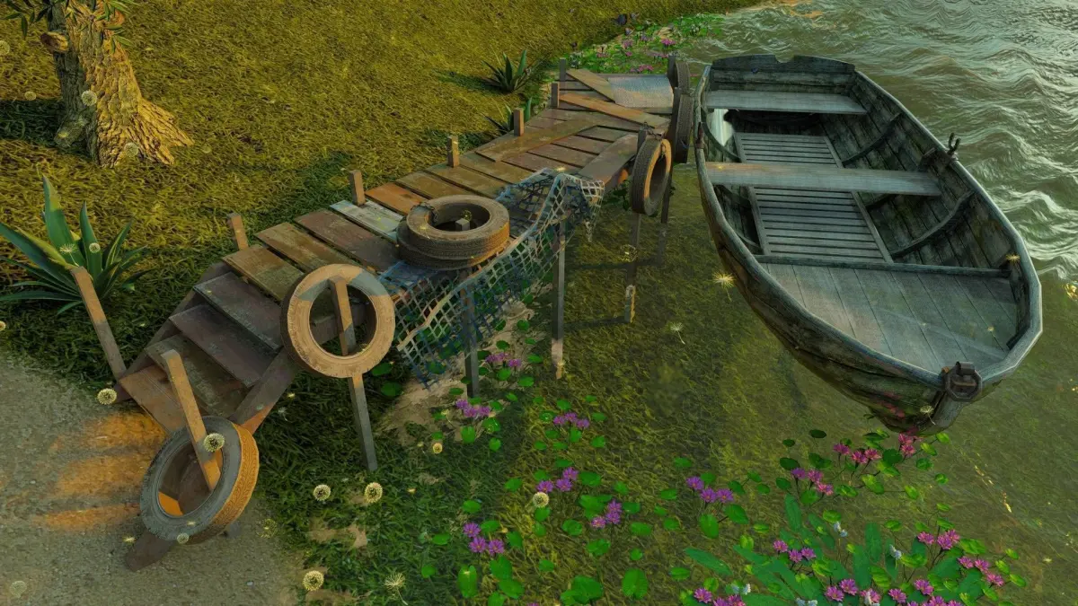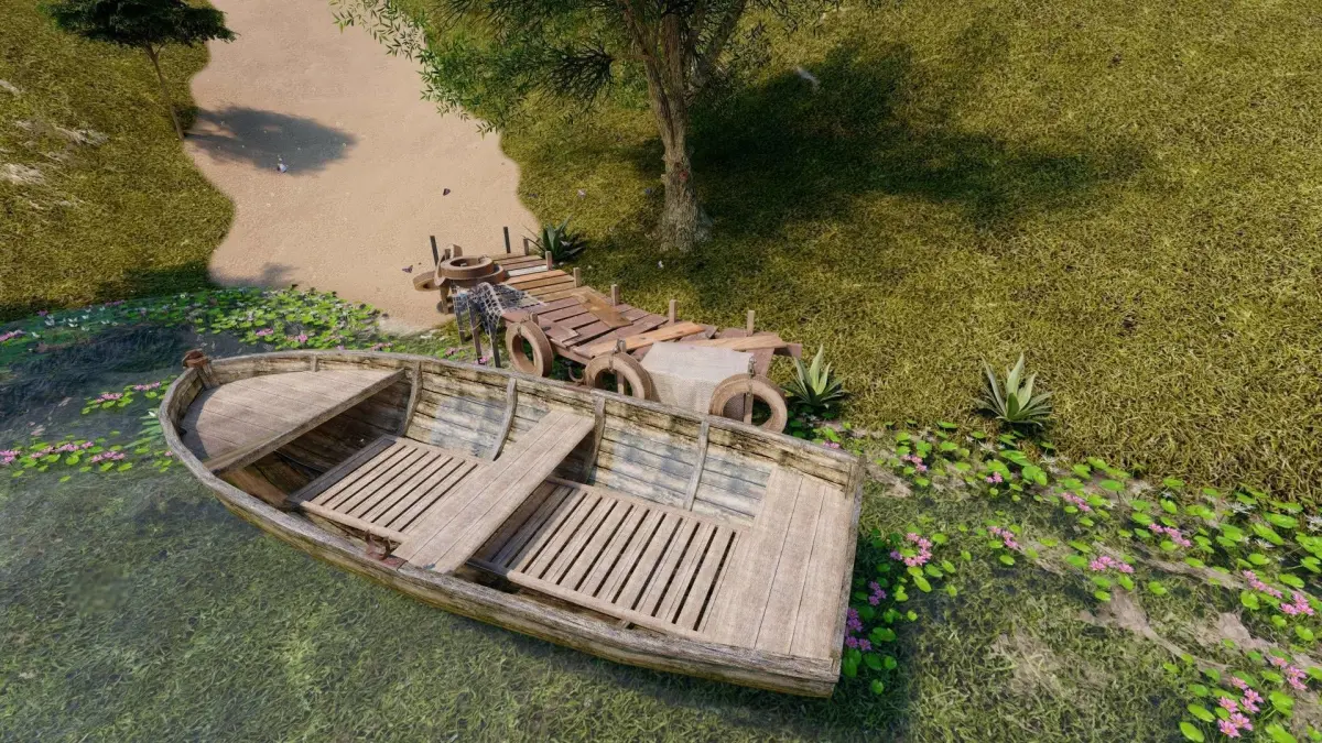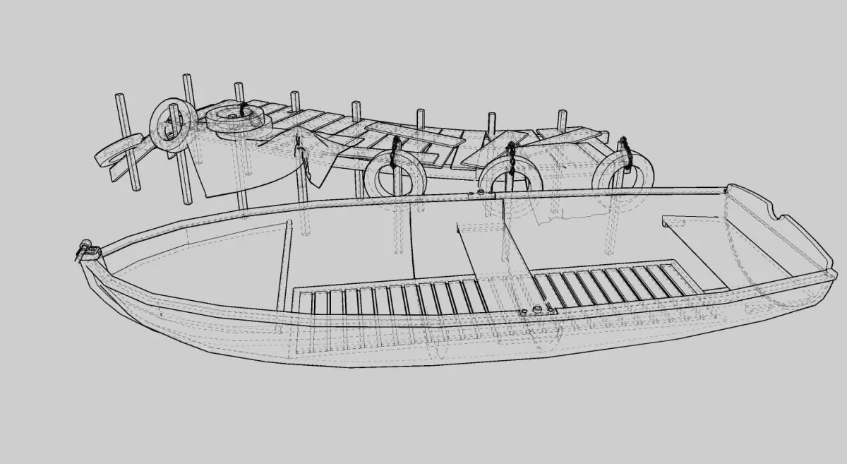 THE 3D Wooden Ship Hanger Plus Boat Realistic design for Games Low-Poly design with crafts.