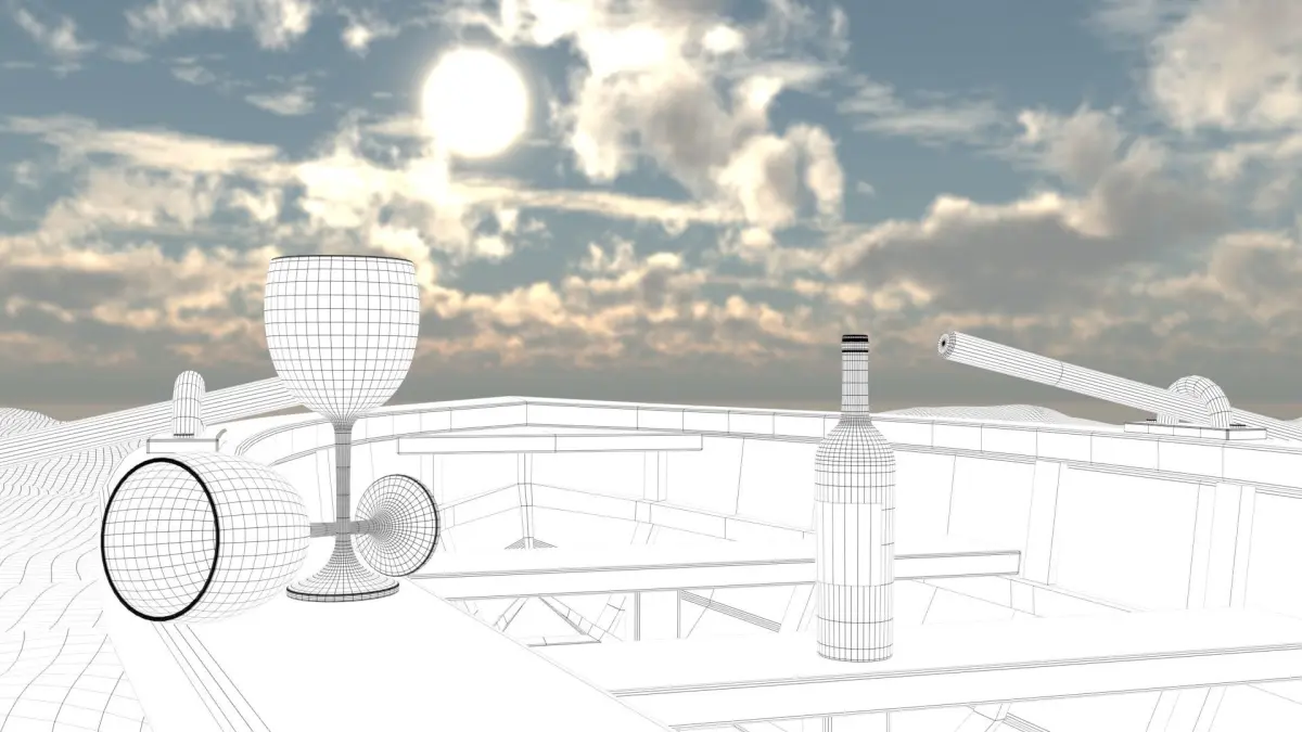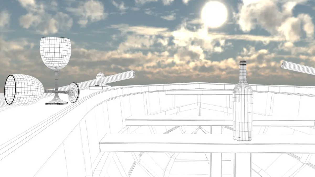 I used subdivision on wine glass1, wine glass2, ocean and wine models. (If you want same result out of maya, just smooth the models)Models also have uv maps of their own. Uv maps are unwrapped and non-overlapping