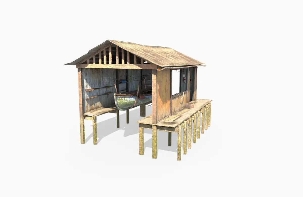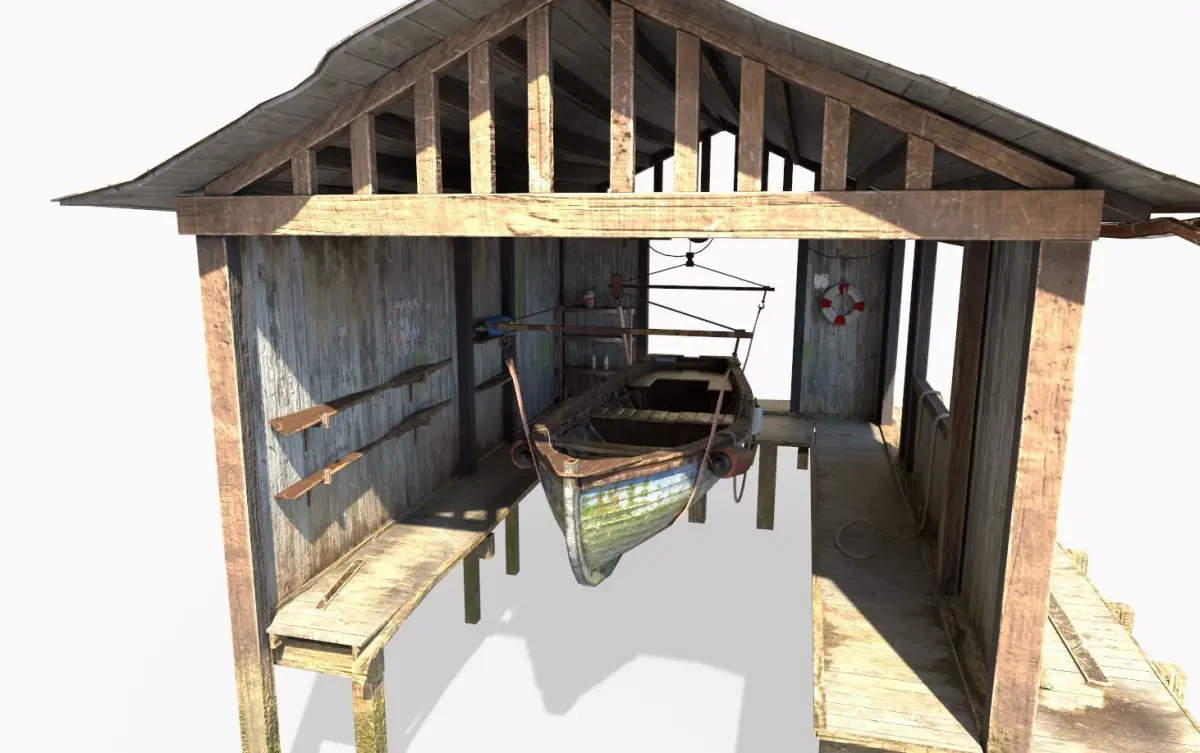 Model of a Boathouse. Model is very realistic. It has a 8 PBR material. Maps are diffuse-specular-glossiness-height and normal. Also, PBR Metallic-Roughness ( Basecolor-Metallic-Normal-Roughness-Height) workflow has been added. Model's textures has two sizes; 4096x4096-2048x2048. All maps are JPG formats and unwrapped, non-overlapping.