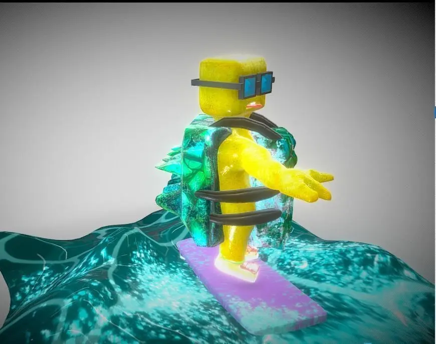 Original Concept done in Photoshop , Creature design,Fictional Characters/anthropomorphic of turtle with characteristic of a human boy , who loves surfing on a square board in the sea.