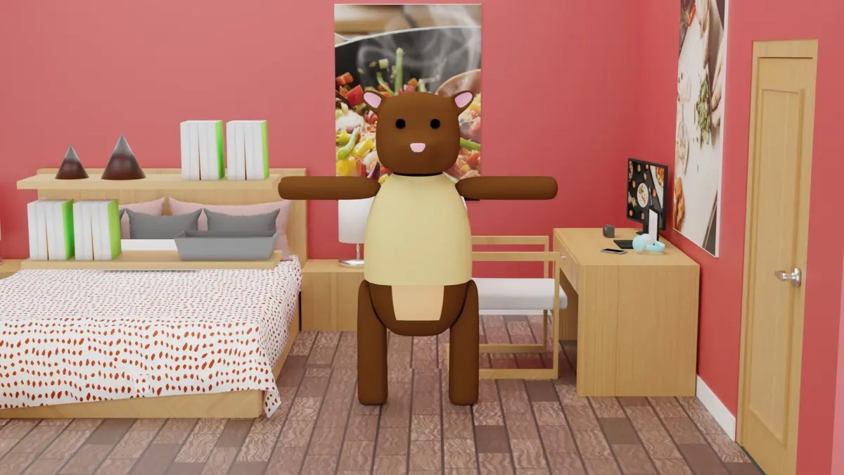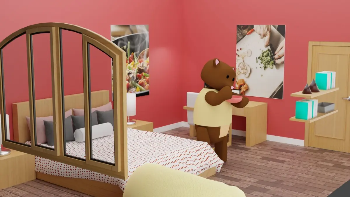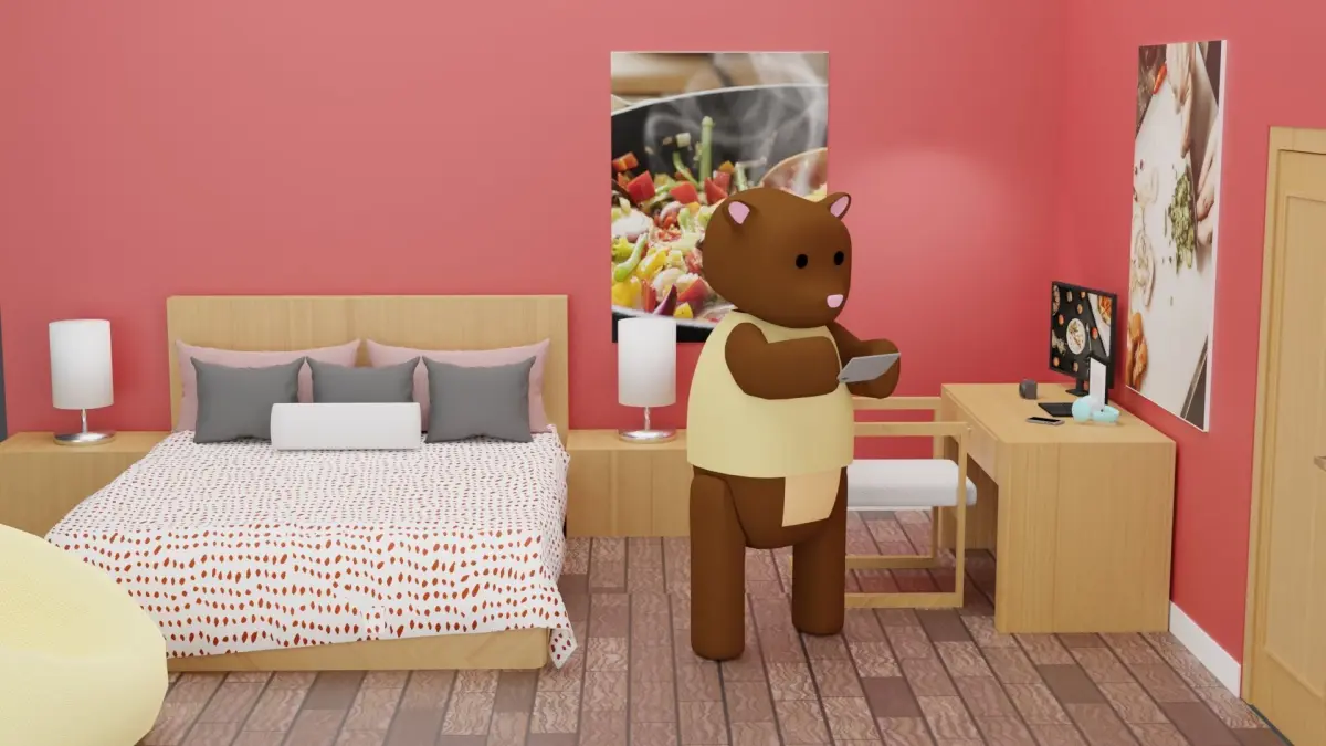 A real-world scale chef bedroom with a rigged male bear character named Bobae. This product is part of my DC22 collection which is a 3D animated mini-series I am creating. Both the bedroom as well as the character are ready to be used in any project such as gaming and cinematics. The character is fully rigged, including the shirt he is wearing.