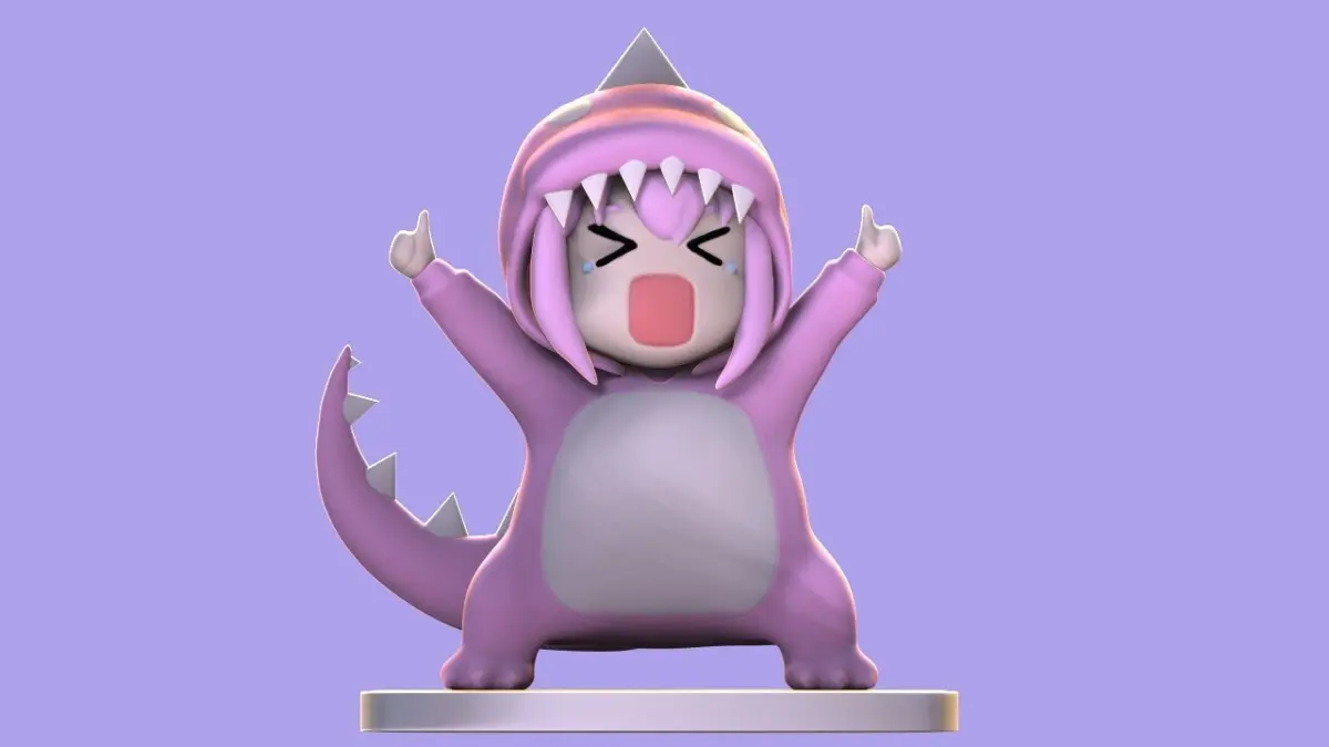 a nice 3d model treated for 3d printing, this model is from bocchi the rock in his dinosaur style, it was one of my first models I made, so I decided to use it, it is 3 stl files, it is divided in the head, body and base.