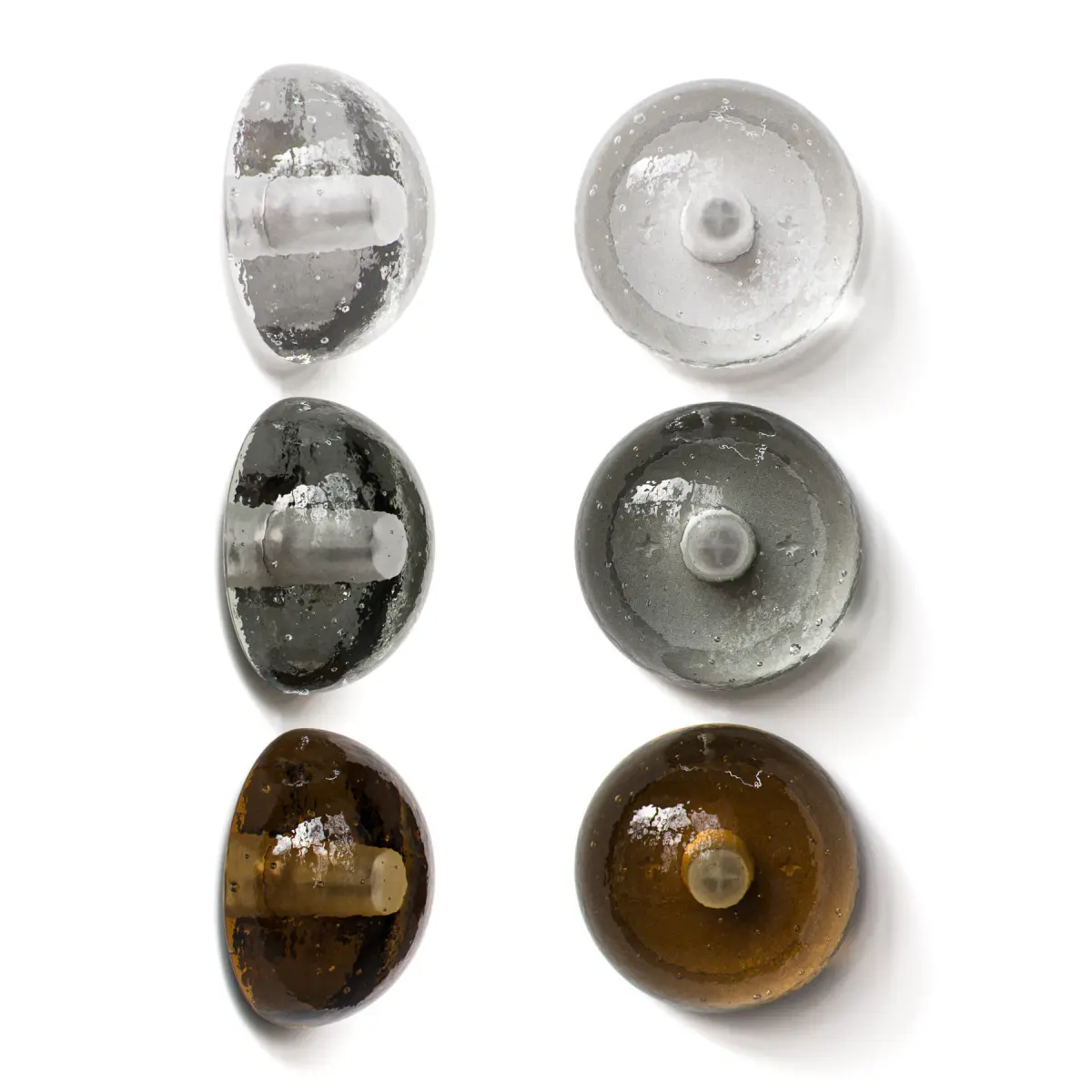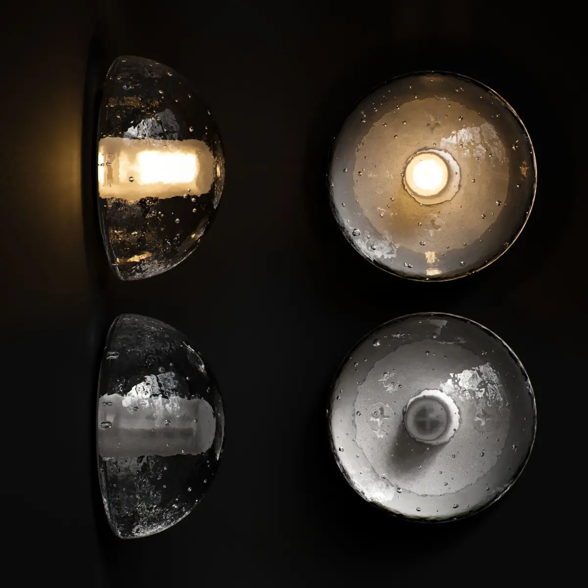 Series 14, designed by Omer Arbel in 2005.14s series is a cast glass hemisphere. Inside is a cylindrical void with a matte finish.The balls glow thanks to a low-voltage xenon lamp or led-lamps. Light interacts with bubbles of imperfect cast glass, which resembles small candles floating in spheres of water.