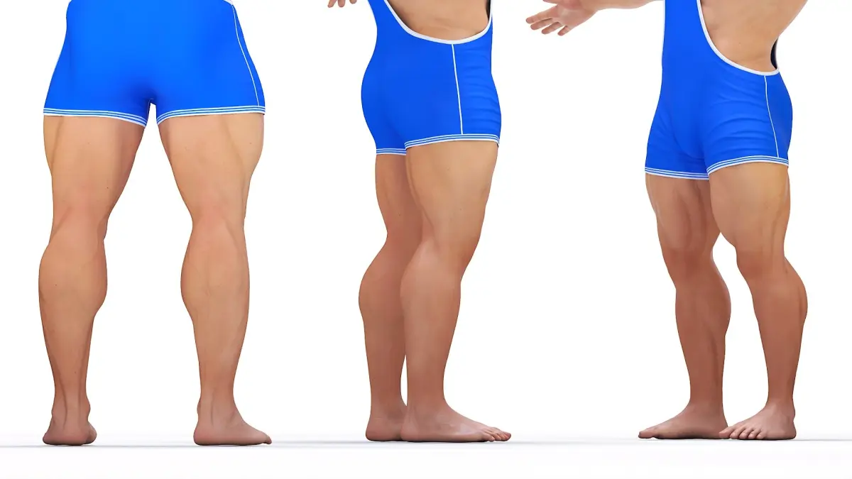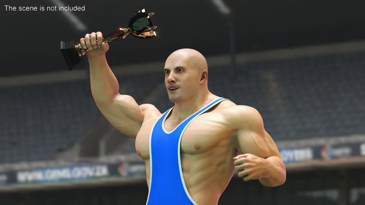 Bodybuilder in Blue Leotard Rigged for Cinema 4D is a three-dimensional model of wrestling singlet (wrestling leotard, wrestling suit, wrestling singlet, wrestling tricot or wrestling maillot) that is a one-piece, tight-fitting uniform, and that used in wrestling type sports (greco-roman wrestling, freestyle, etc.).