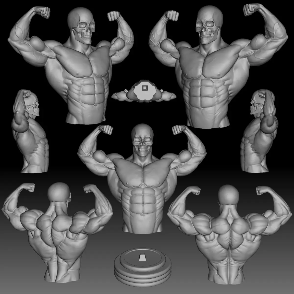 Some popular bodybuilding poses for 3D printing.Front Double Bicep Pose.Front Lat Spread Pose.Side Chest Pose.Side Tricep Pose.Abdominals with one thigh pose.Most Muscular pose.STL -print format