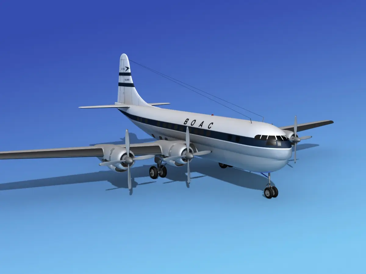 The Dreamscape model here is built very near to scale. Engines are modeled. Stratocruiser is fully textured and comes with animateable control surfaces, landing gear, cowl flaps and propellers. It is available in several different formats.
