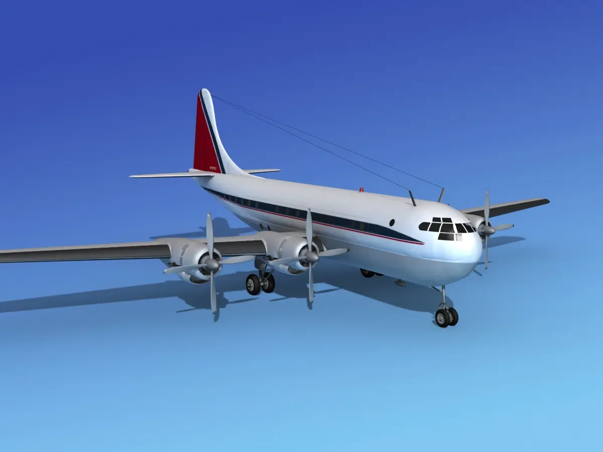 B-377 is built very near to scale. Engines are modeled. The model is fully textured and comes with animatable control surfaces, landing gear, cowl flaps and propellers. It is available in 10 different formats.