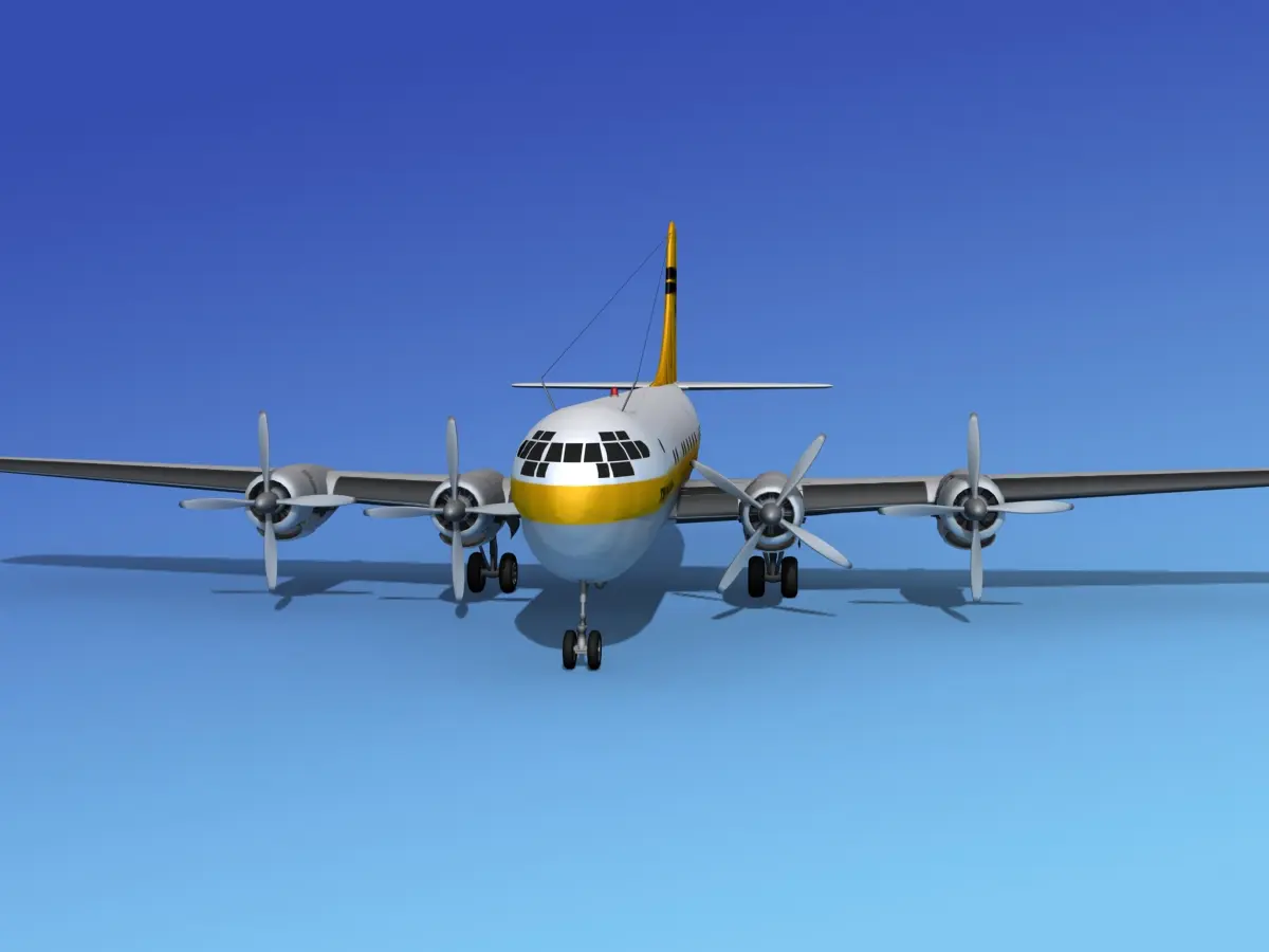 B-377 is built very near to scale. Engines are modeled. The model is fully textured and comes with animatable control surfaces, landing gear, cowl flaps and propellers. It is available in 10 different formats.