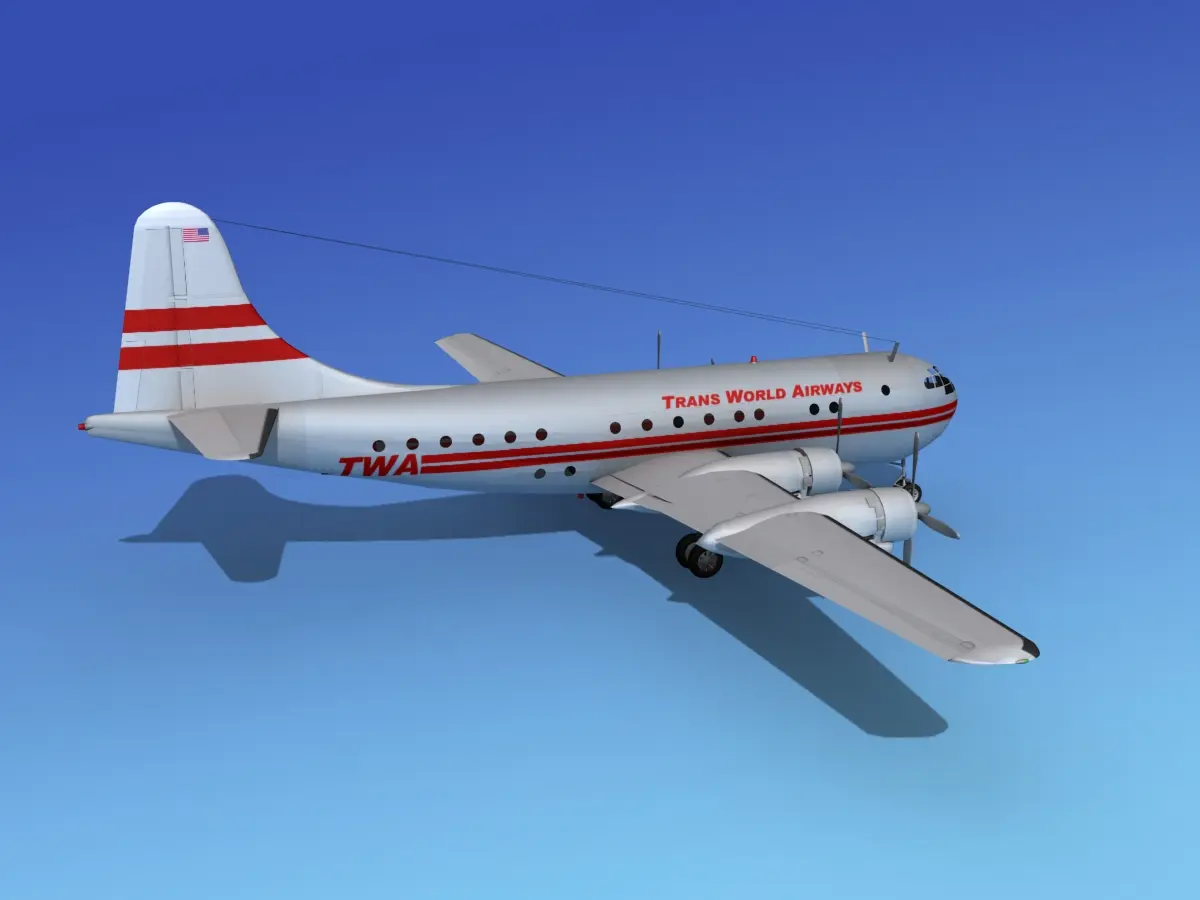 B-377 is built very near to scale. Engines are modeled. The model is fully textured and comes with animatable control surfaces, landing gear, cowl flaps and propellers. It is available in 10 different formats.