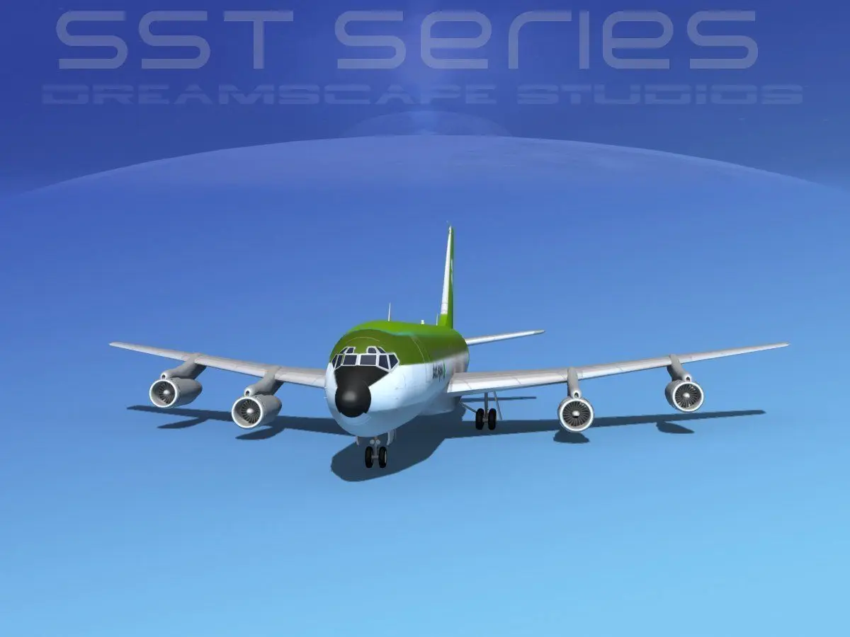 This Boeing 707-320 is built near to scale within a few percent of actual general dimensions. This medium poly model includes smooth exterior with some detail and a realistic rendering appearance. It is built with single sheet textures with a 2000x 2000 resolution. It also has landing gear that can be “turned off or hidden” for inflight animation. This model doe not have the animateable control surfaces of our non-sst model.