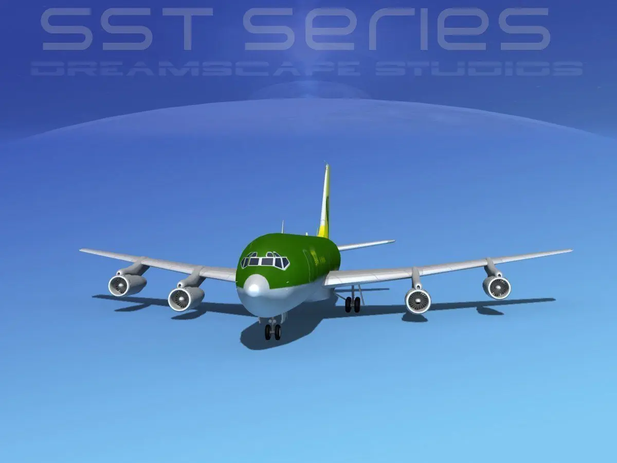 This Boeing 707-320 is built near to scale within a few percent of actual general dimensions. This medium poly model includes smooth exterior with some detail and a realistic rendering appearance. It is built with single sheet textures with a 2000x 2000 resolution. It also has landing gear that can be “turned off or hidden” for inflight animation. This model doe not have the animateable control surfaces of our non-sst model. This is the first model Dreamscape has produced with both single sheet textures and a full complement of liveries giving the user a wide variety of models to choose from.