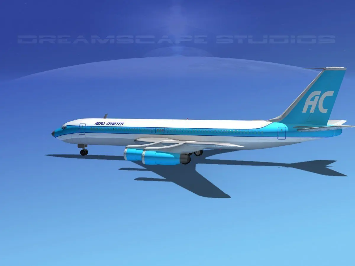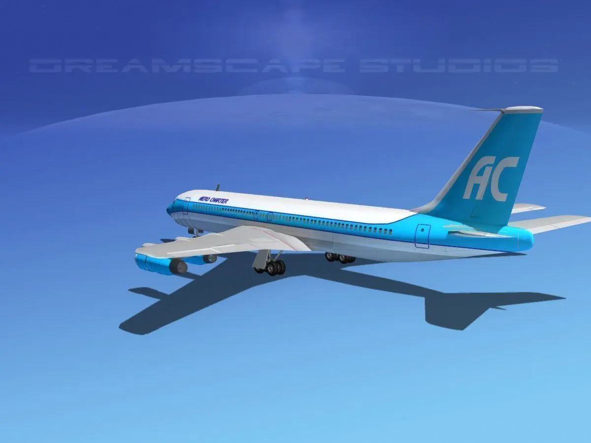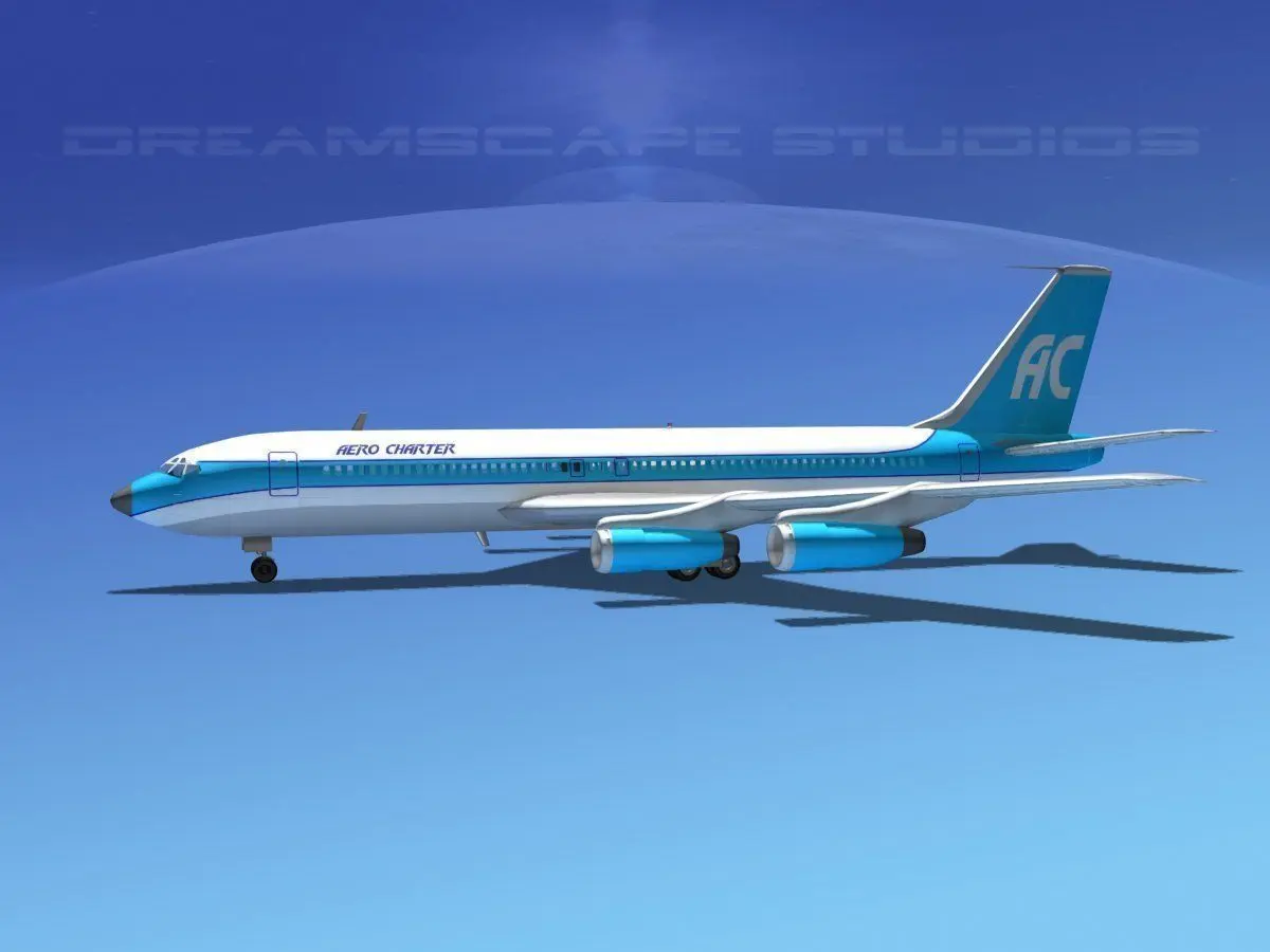 B 707 is built near to scale and is fully textured. This medium poly model includes many animateable features including flaps, ailerons, elevators, rudder, landing gear, landing gear doors and turbines. The model is provided in 11 different formats.
