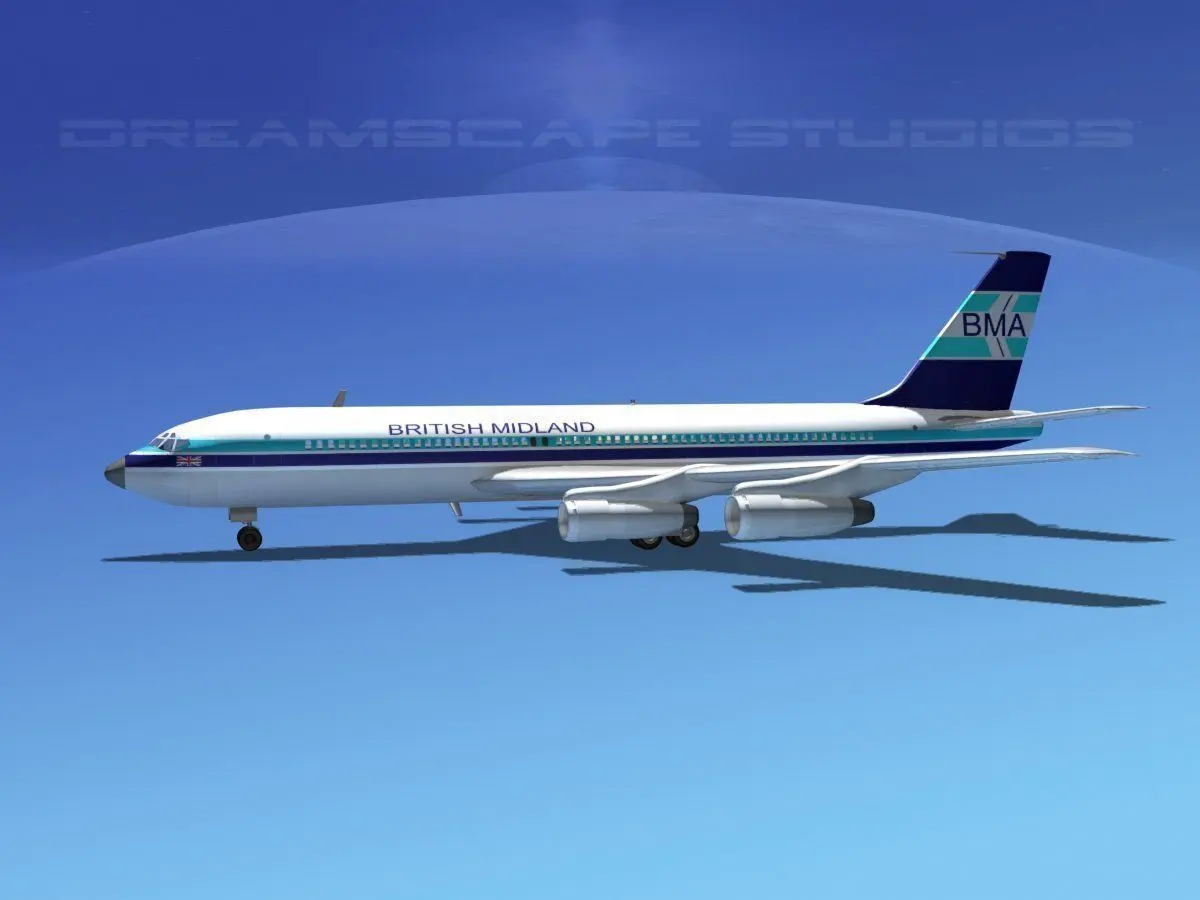 B 707 is built near to scale and is fully textured. This medium poly model includes many animateable features including flaps, ailerons, elevators, rudder, landing gear, landing gear doors and turbines. The model is provided in 11 different formats.