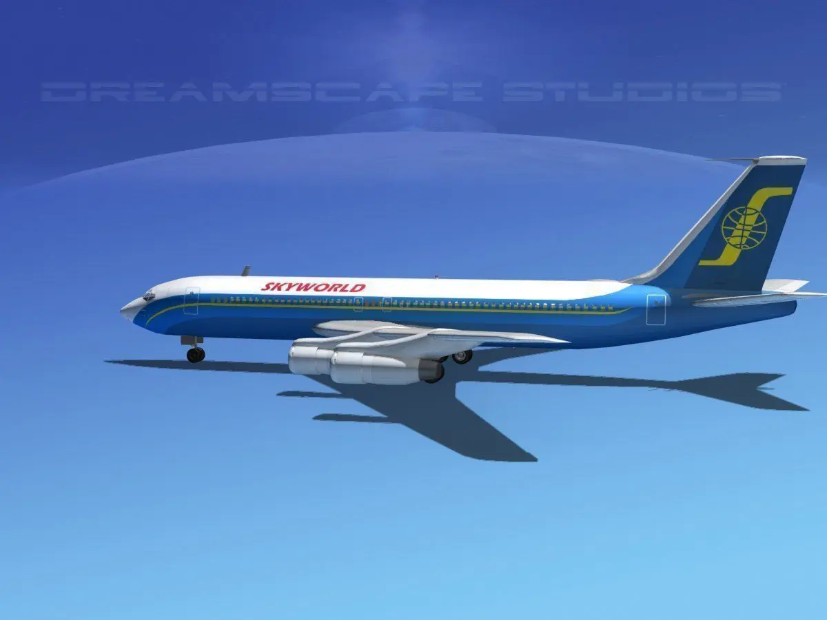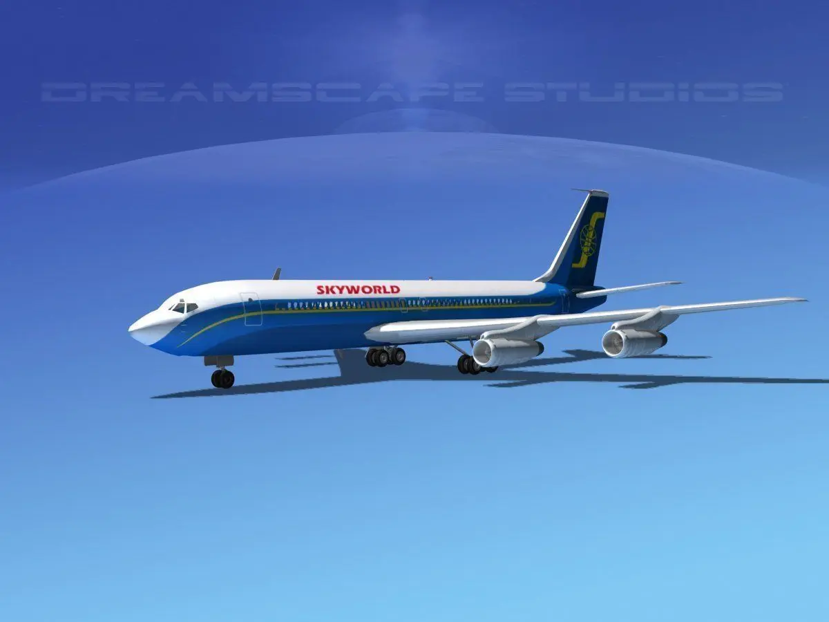 B 707 is built near to scale and is fully textured. This medium poly model includes many animateable features including flaps, ailerons, elevators, rudder, landing gear, landing gear doors and turbines. The model is provided in 11 different formats.