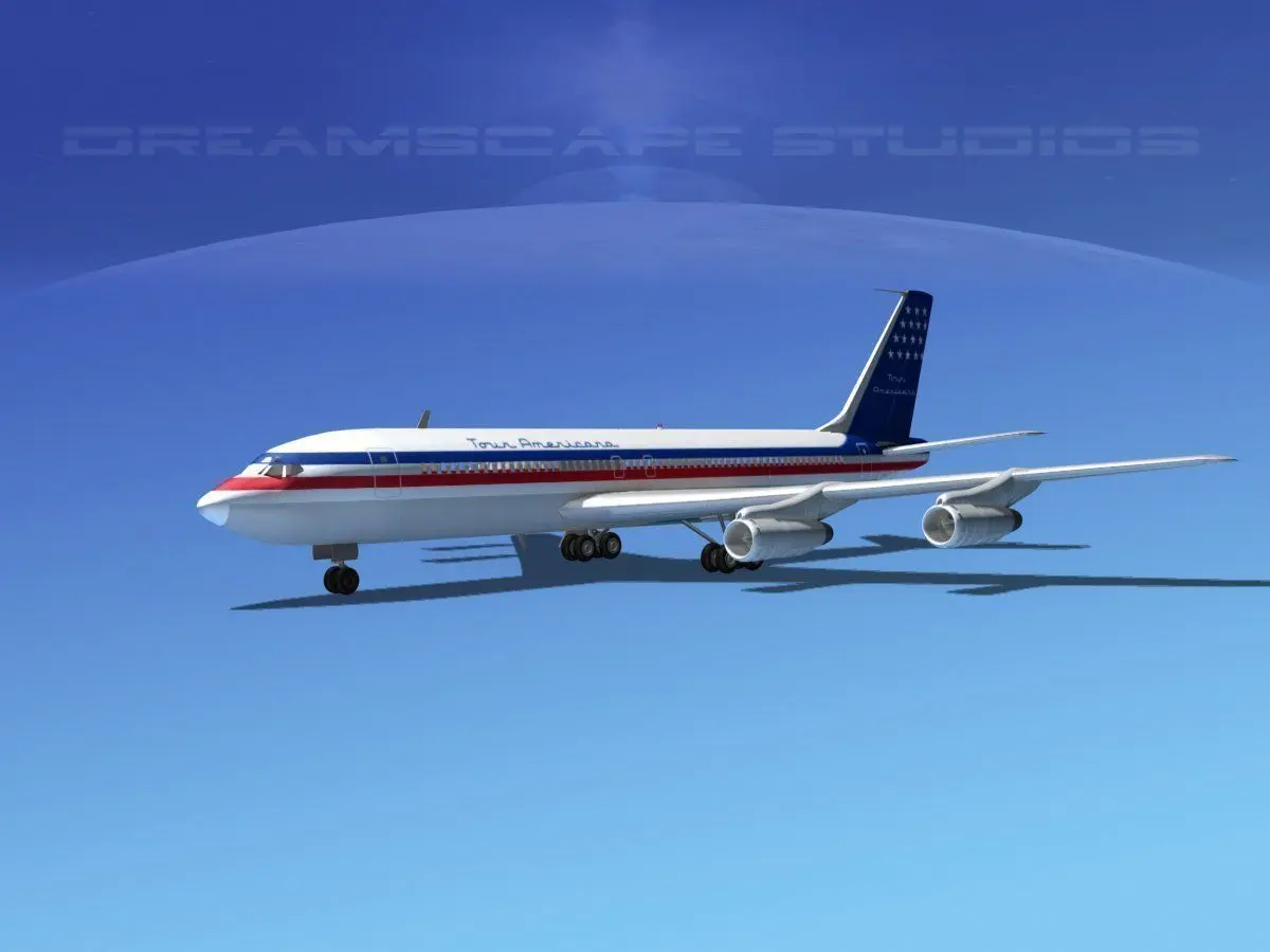 B 707 is built near to scale and is fully textured. This medium poly model includes many animateable features including flaps, ailerons, elevators, rudder, landing gear, landing gear doors and turbines. The model is provided in 11 different formats.