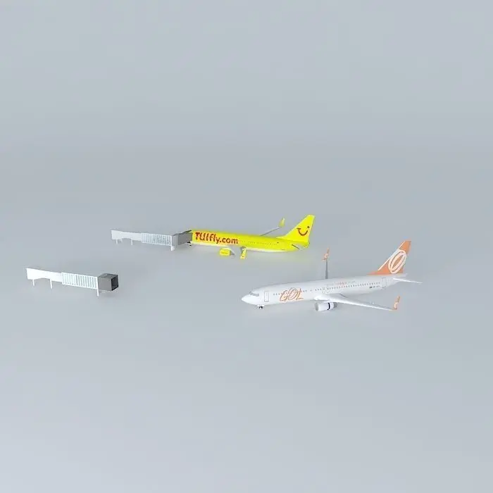 This 3D model was originally created with Sketchup 8 and then converted to all other 3D formats. Native format is .skp 3dsmax scene is 3ds Max 2016 version, rendered with Vray 3.00 Thanks to MoniMark and alex_xs for the planes and SketchUp for the people. I MADE A JETWAY. Yes it's true. Not a RAW product or something. There is plane to show why the jetways are in current position. Plane that is pushbacking is the jetway closed. Plane that is parked and people in the jetway is gate open.