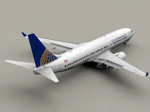 Accurate very high definition model of an Boeing 737-800 textured as Continental Airlines with detailed landing gear and wings, fully textured. The version with winglets and the version without winglets are included. All flaps, rudders and the landing gear can be animated. All textures included in tga, eps and Adobe Illustrator format.