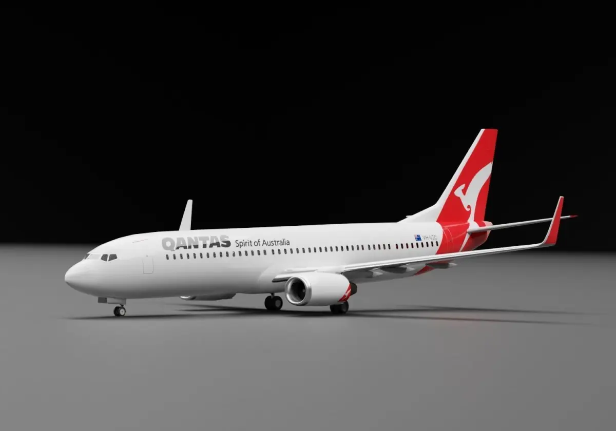 This is a 3d model of a Boeing 737-800 with a Qantas Airline livery