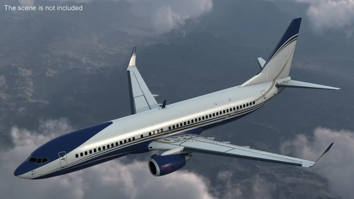Boeing 737-800 with Interior Rigged for Maya is a three-dimensional model of a luxury aircraft, crafted for business and personal jet travel.