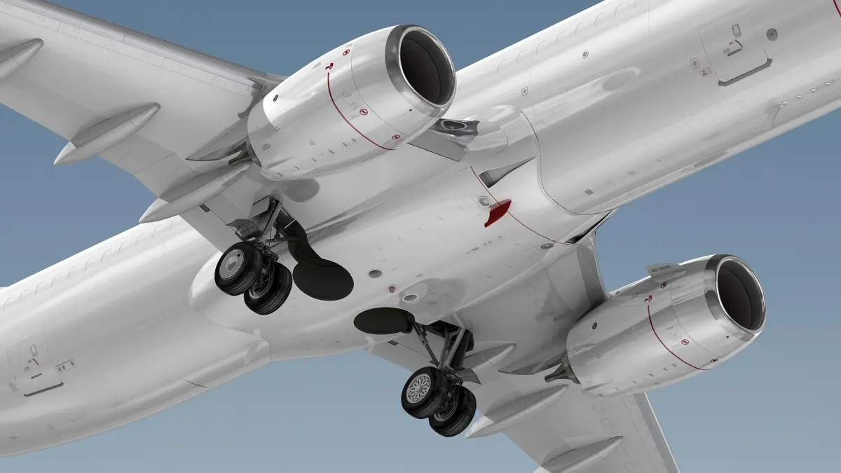 All animatable parts (incoming flaps, outgoing flaps, ailerons, spoilers, nose landing gears, main landing gears, gear hatches, fan discs, passenger doors, cargo doors, engine caps, elevators, nose radome and rudder) are named as separately.