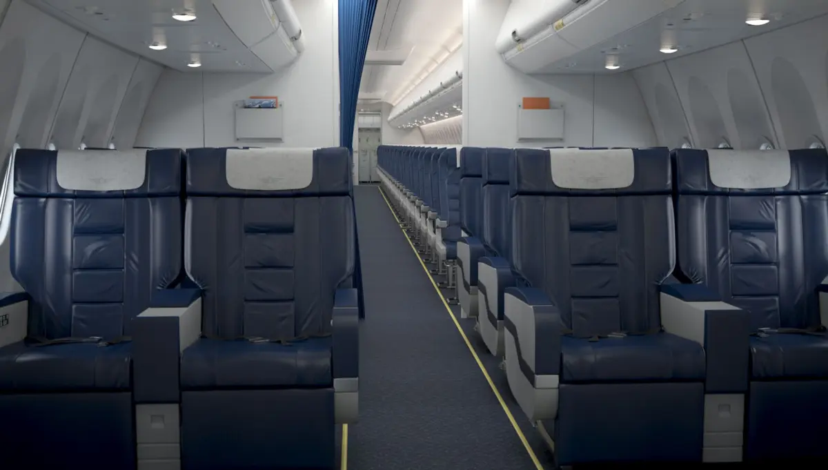 This is a model of Boeing 737 Full Cabin including toilets, kitchen.