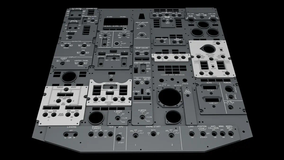 Boeing 737 Overhead Panels (Mechanisms and knobs not included)