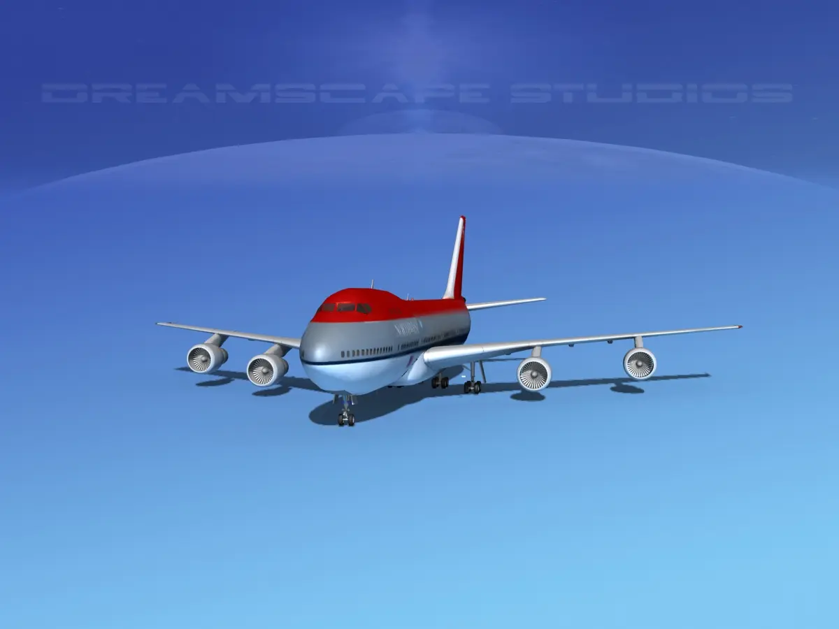 747-100 medium poly Jumbo Jet is built near to scale within actual general dimensions and is fully textured. This model includes many animateable features including flaps, ailerons, elevators, rudder, landing gear, landing gear doors and turbines. It is provided in many different formats and airline liveries.