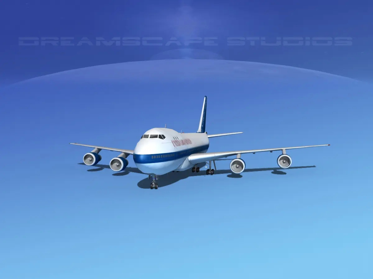 747-100 medium poly Jumbo Jet is built near to scale within actual general dimensions. This model includes many animateable features including flaps, ailerons, elevators, rudder, landing gear, landing gear doors and turbines. It is provided in many different airline liveries.