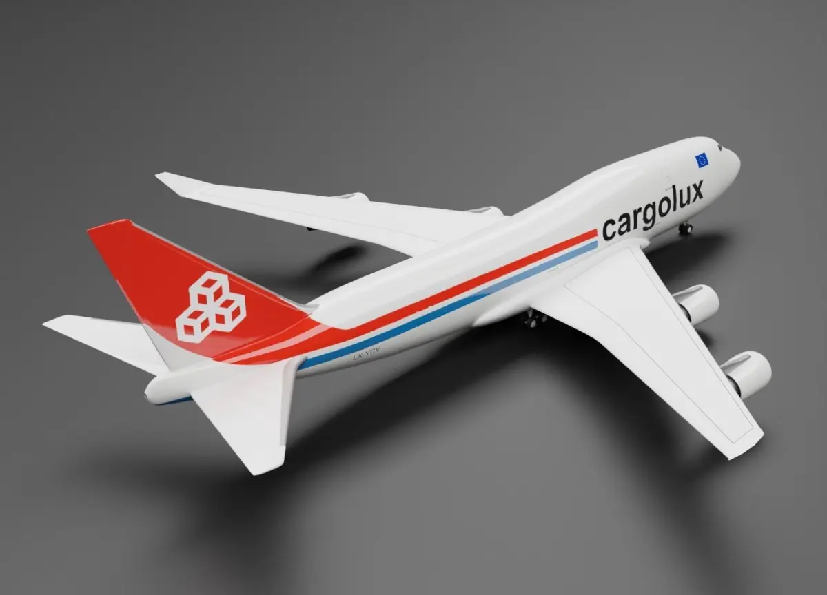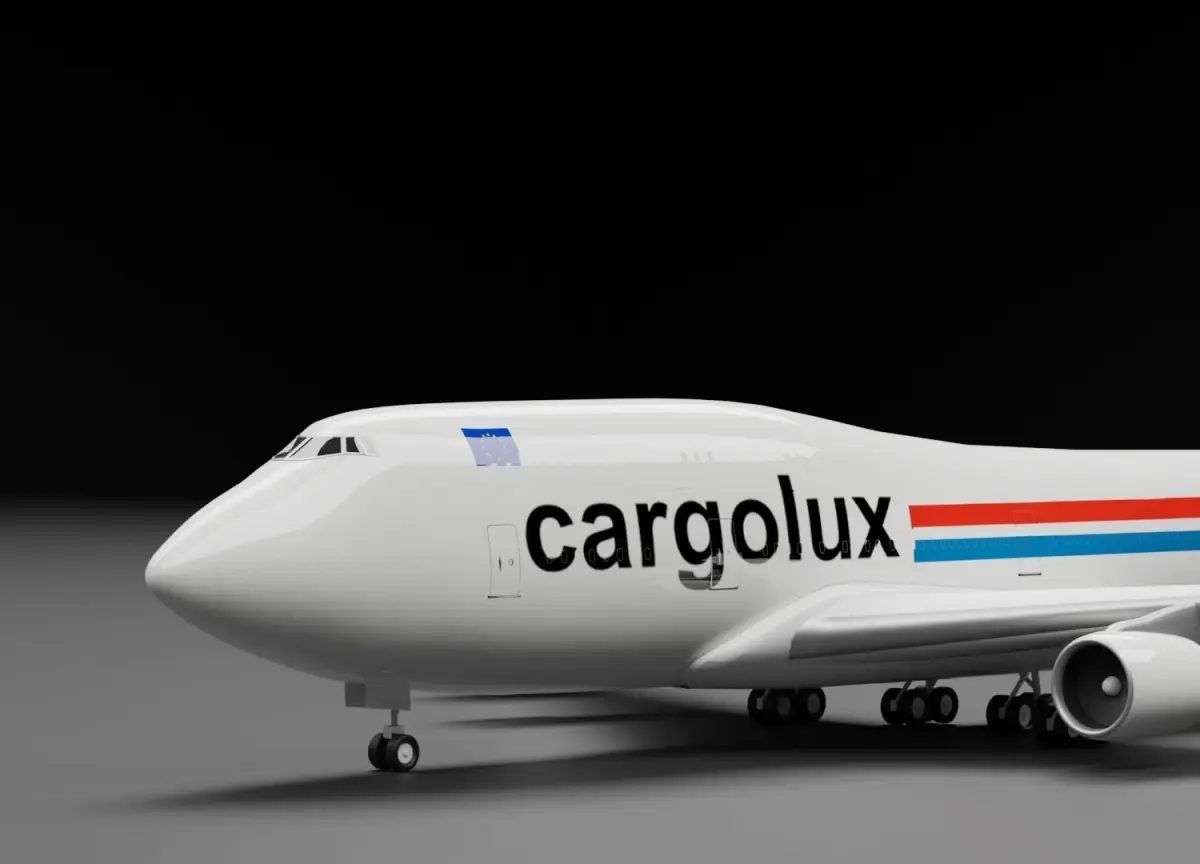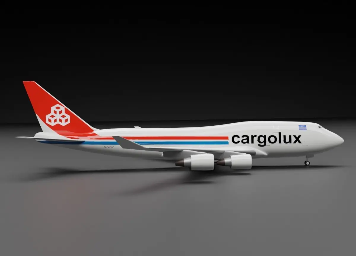 This is a 3d model of a Boeing 747-400 with a Cargolux Livery