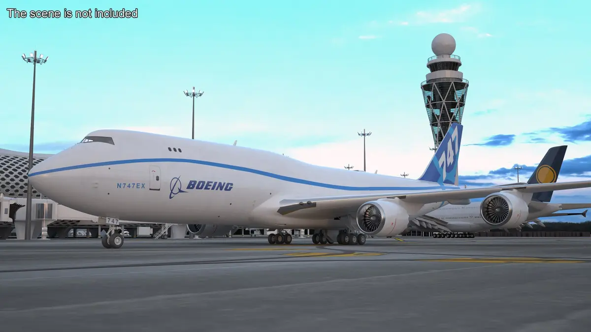 Boeing 747-8 Freighter is a 3d model of a large, long-range cargo aircraft, recognized for its iconic hump-shaped upper deck and significant freight-carrying capacity.