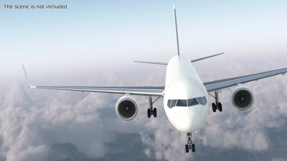 This model showcases the Boeing 757's sleek design, featuring twin engines mounted beneath its wings for efficient fuel consumption and a fuselage tailored for aerodynamics and passenger comfort. The detailed model highlights the landing gear, wing flaps, and engines, providing a realistic representation suitable for various applications.